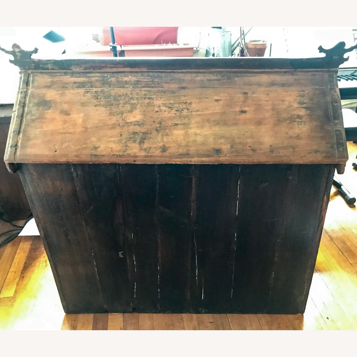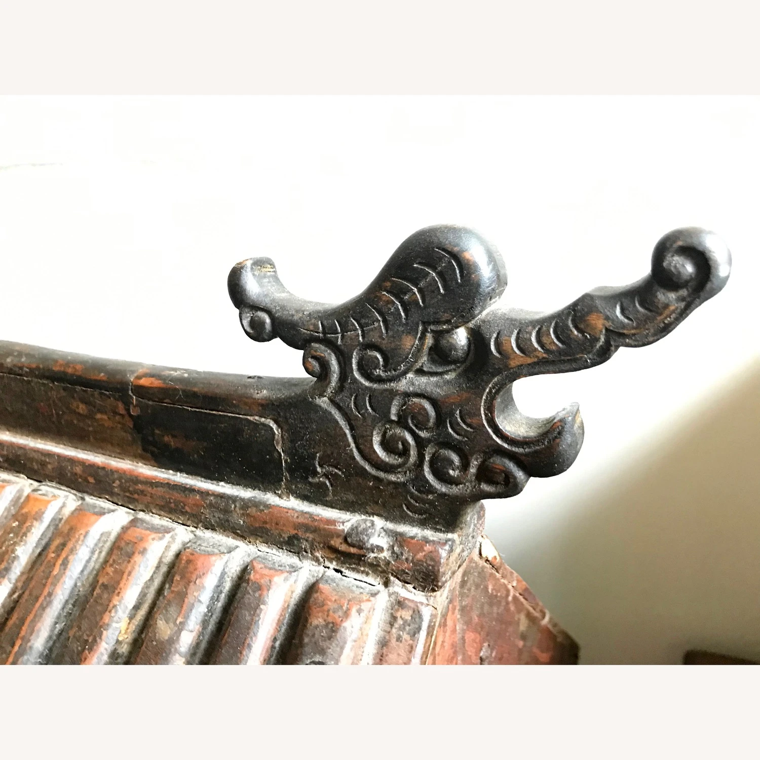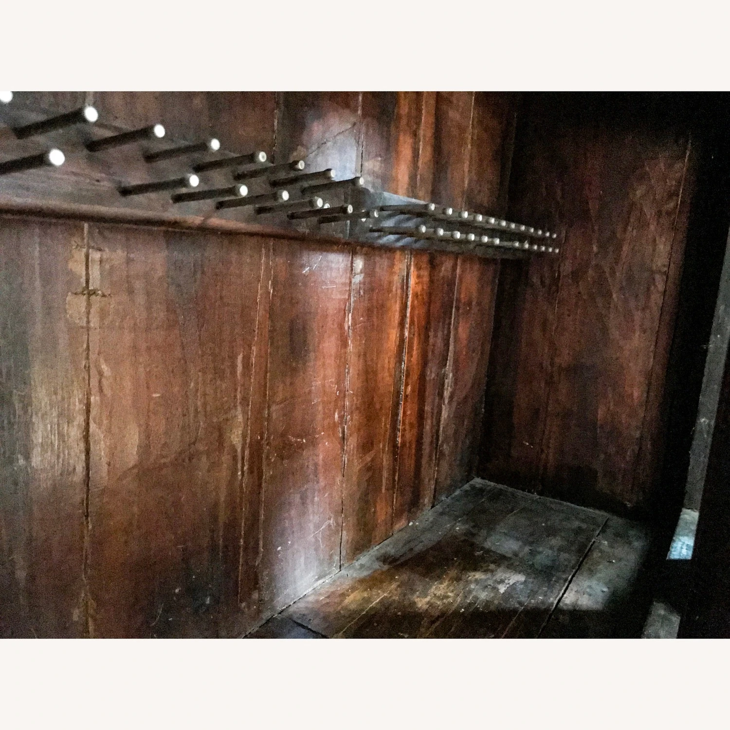 Seller’s Notes: Antique bought at ABC Home Carpet: Asian Storage Temple. Inside open dimensions are 30″ high x 11″ deep x 36″ wide. 3 sets of double doors open independently and clasp close with wooden peg. Can sit on the floor or on top of a piece of furniture to be better admired. Note it has a wide base so take that into account. I used it to store Jewelry and installed a tie rack to hold jewelry that can easily be removed. Would be a lovely piece for inside garden, meditation environment, acupuncture clinic to story herbs or towels or in the right home setting. It could even work as a doll house. It looks exactly like when I bought it, but just don’t have the proper space to enjoy it now. Need to make room. Make reasonable offer.