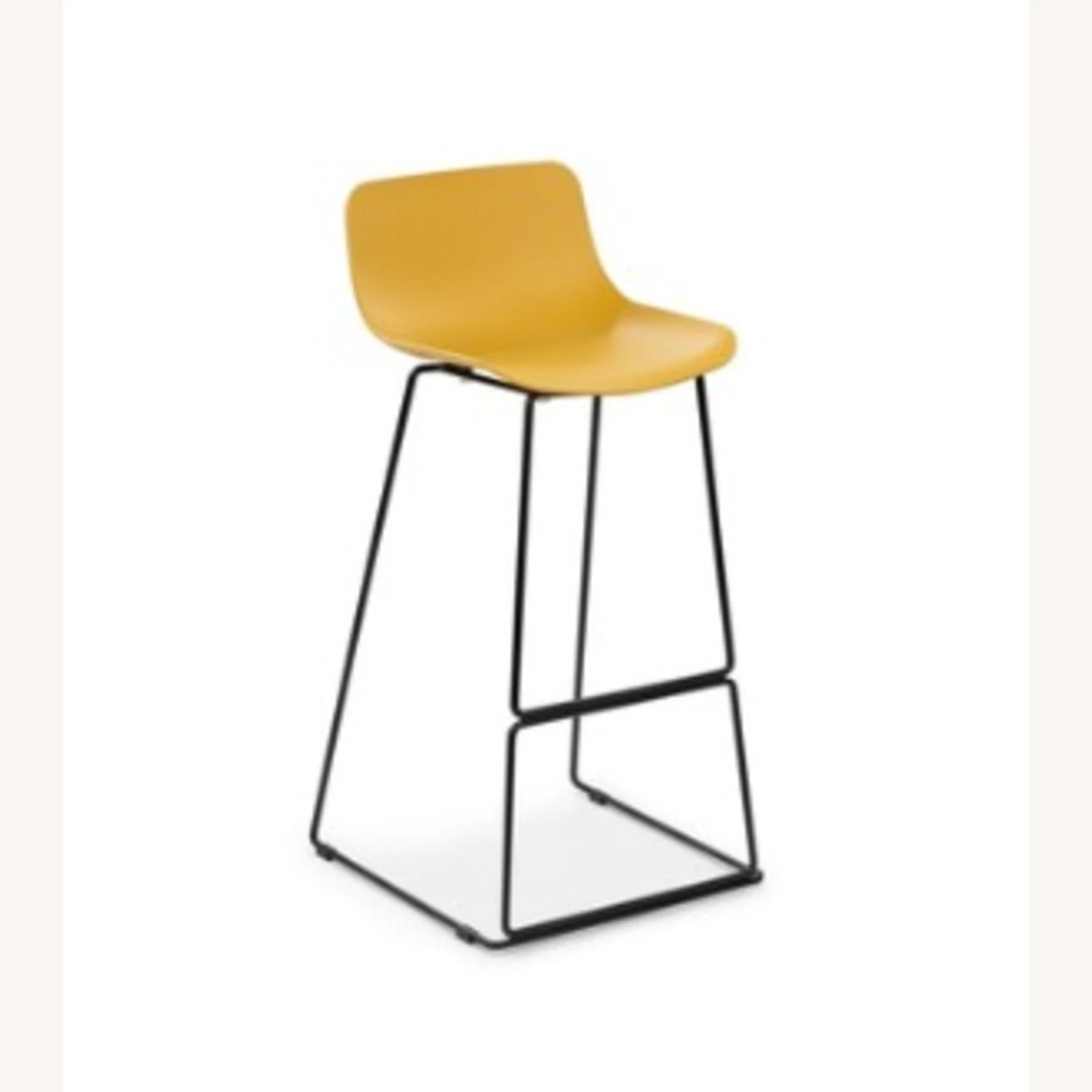 Seller’s Notes: Did someone say poolside bar? The Anco barstool brings that level of leisurely lifestyle to any backyard situation. The Anco is made from molded plastic and set atop black powder coated legs. Whether you’re pulling up to a gilded bar, or to your kid’s treehouse, you’ll look great doing it. Mustard yellow seat color. Suitable for indoor and outdoor use