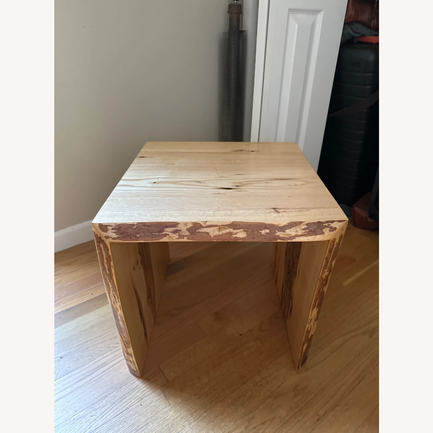 Seller’s Notes: Hand crafted solid wood side tables (2x). Weigh a significant amount.