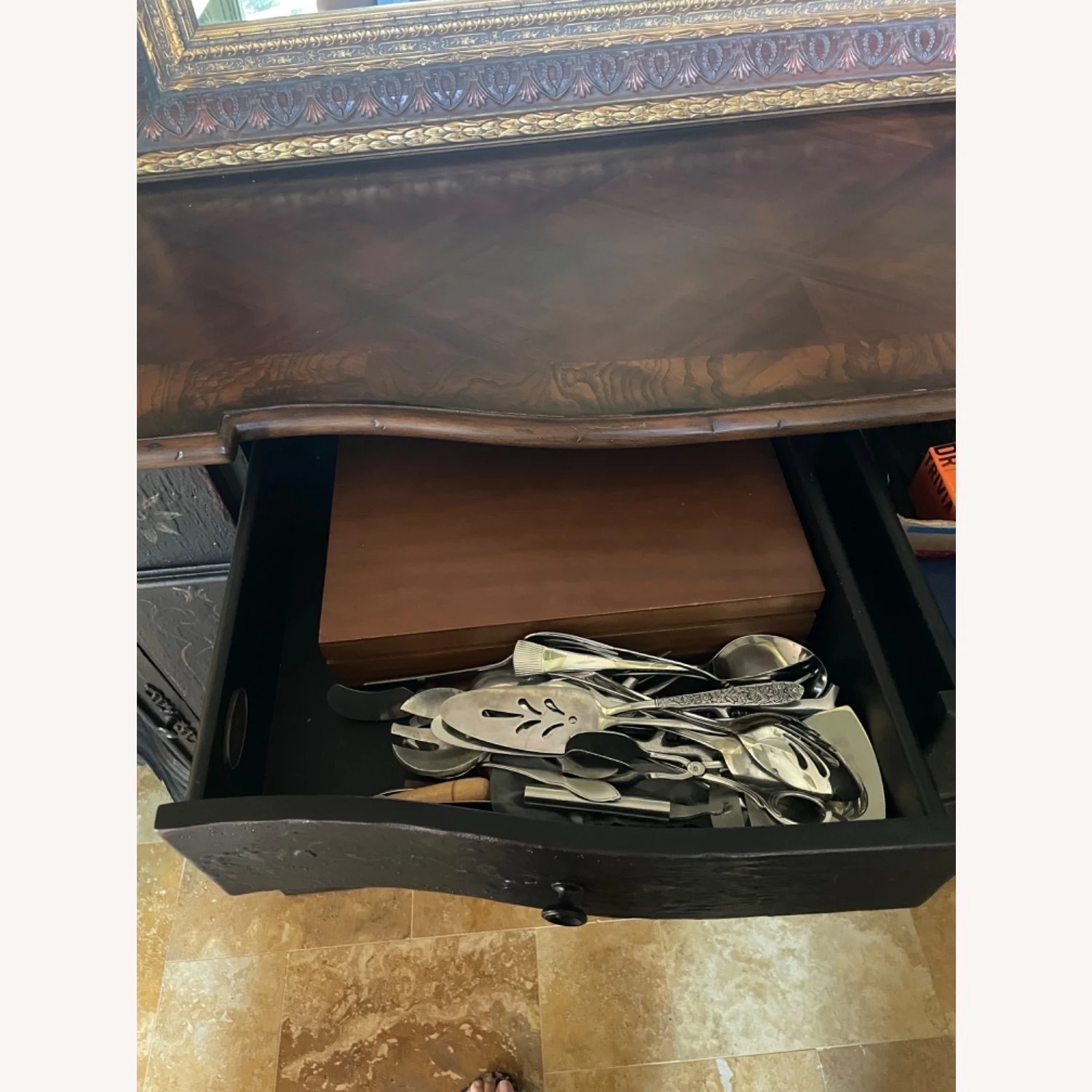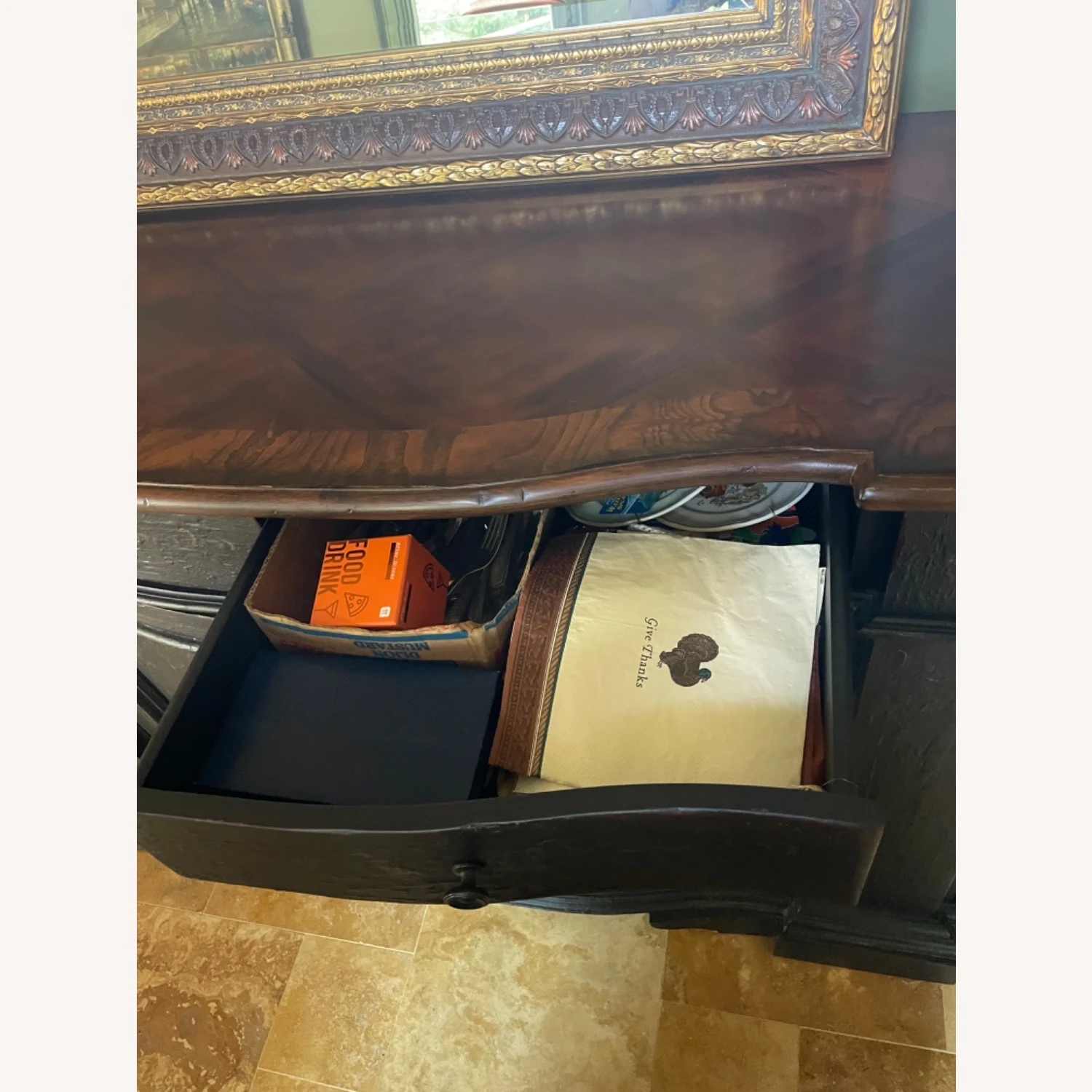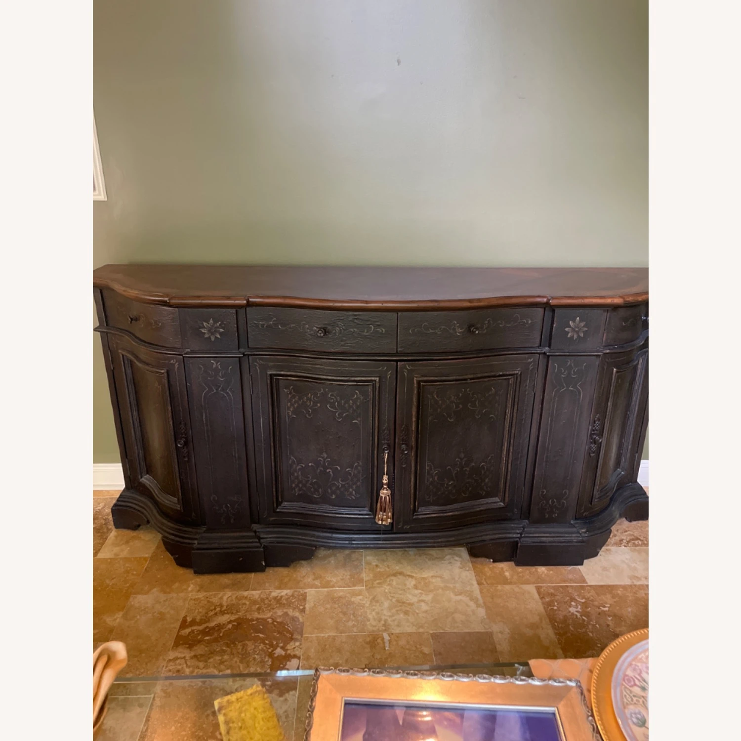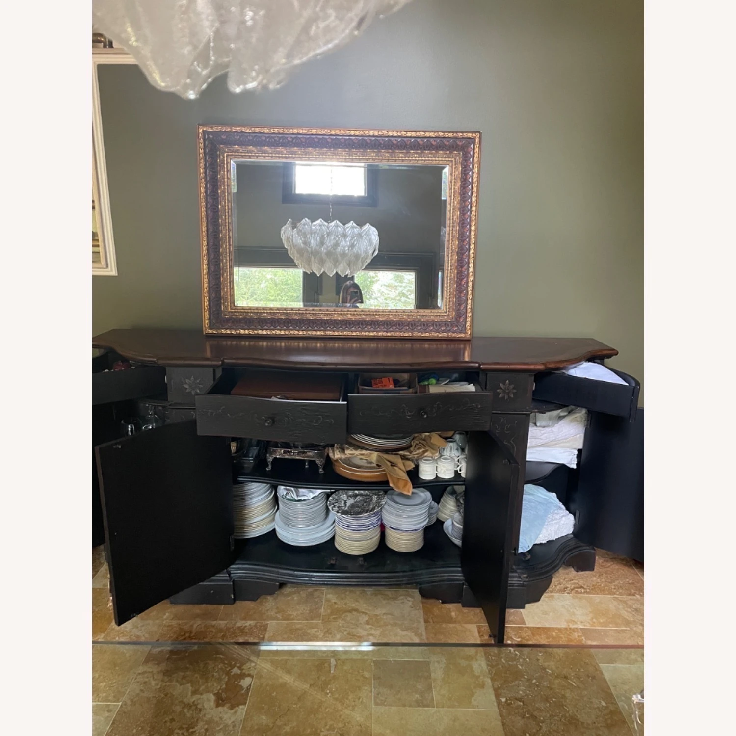 Seller’s Notes: Purchased this sideboard to store China, formal flatware serving utensil and serving pieces. It also stores wine glasses and tablecloths. There is no damage. Non smoking home and small non shedding dog.