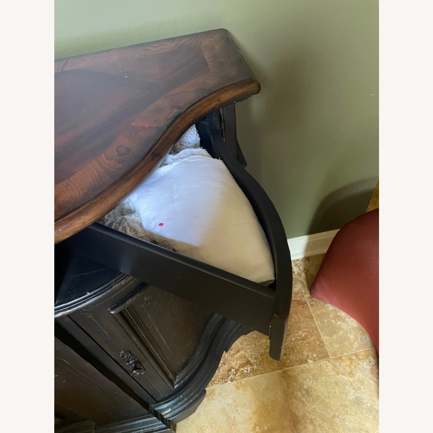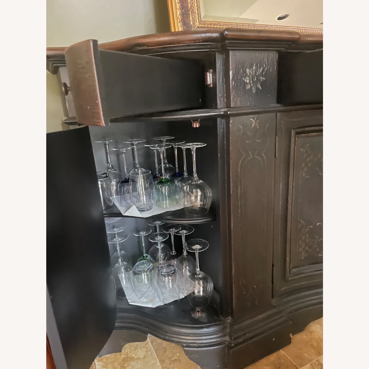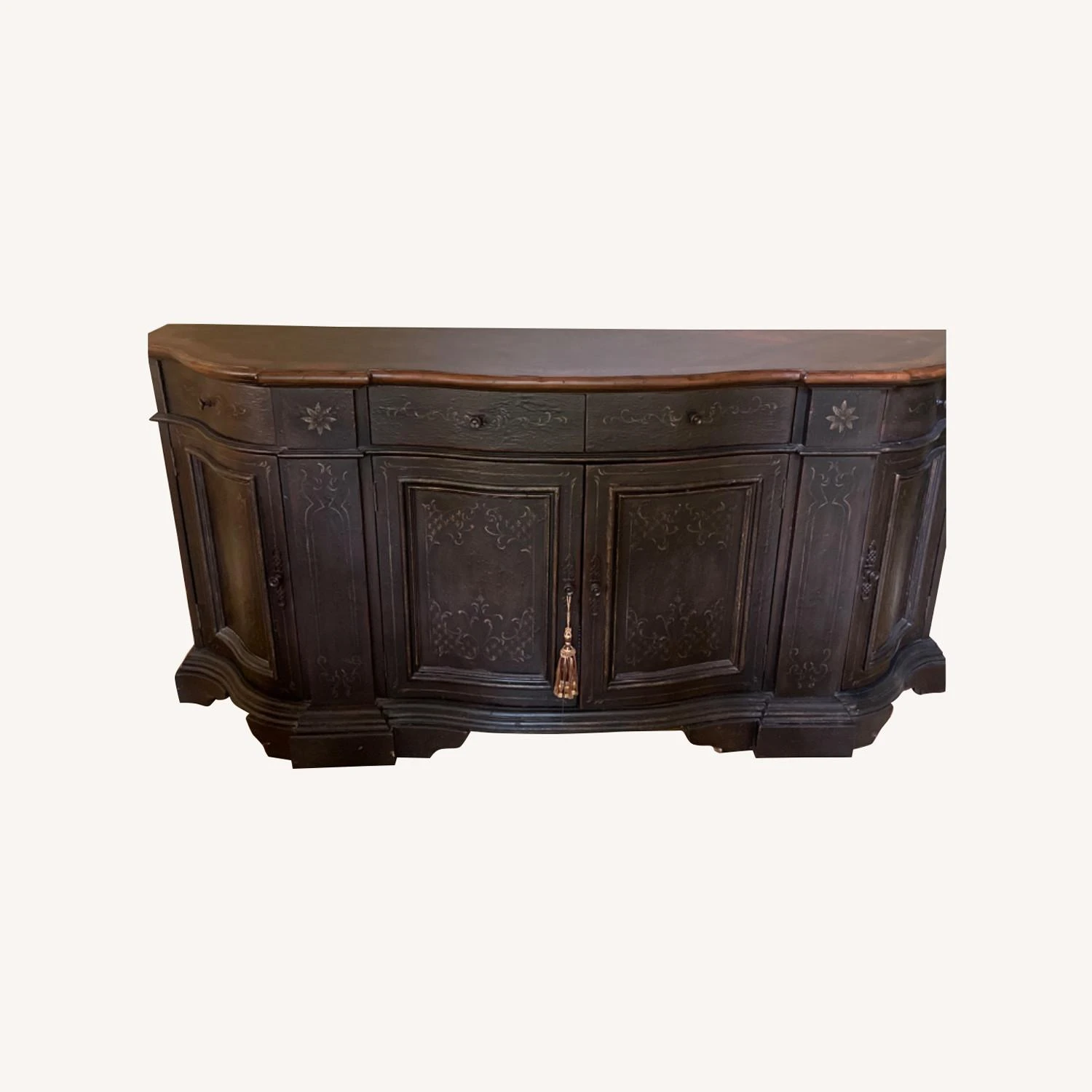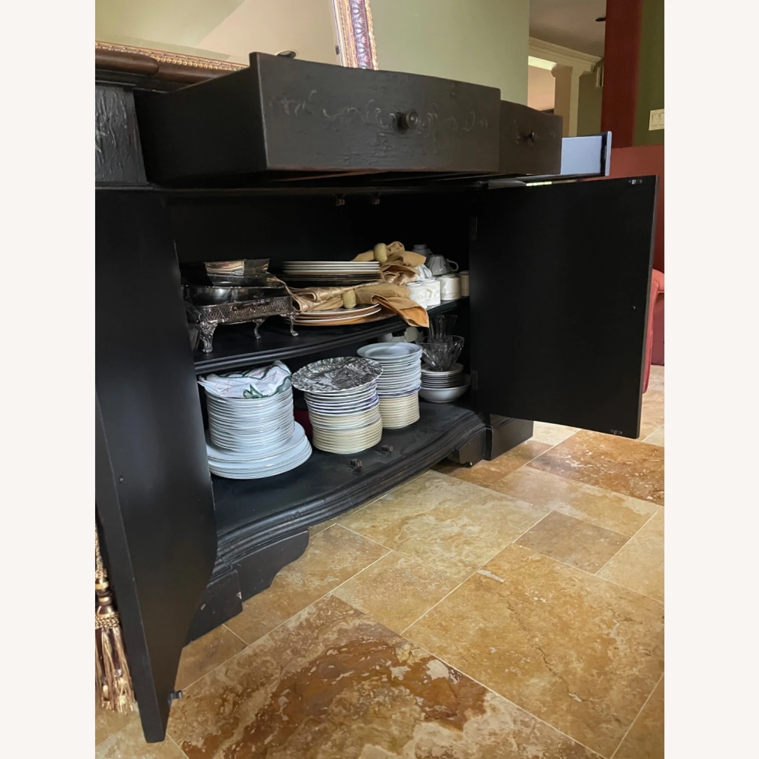 Seller’s Notes: Purchased this sideboard to store China, formal flatware serving utensil and serving pieces. It also stores wine glasses and tablecloths. There is no damage. Non smoking home and small non shedding dog.