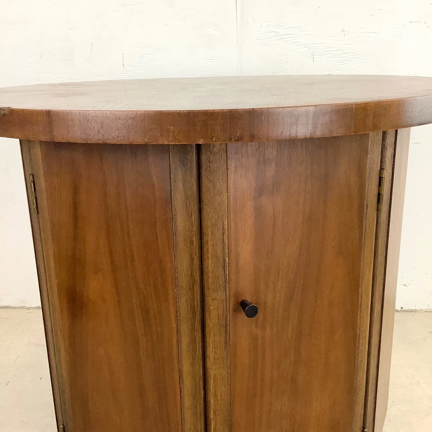 Revitalize your living space with the Mid-Century Modern Circular Walnut End Table. Its functional design, warm walnut tones, and iconic mid-century style will enhance the aesthetic of your home and become a conversation piece among guests.