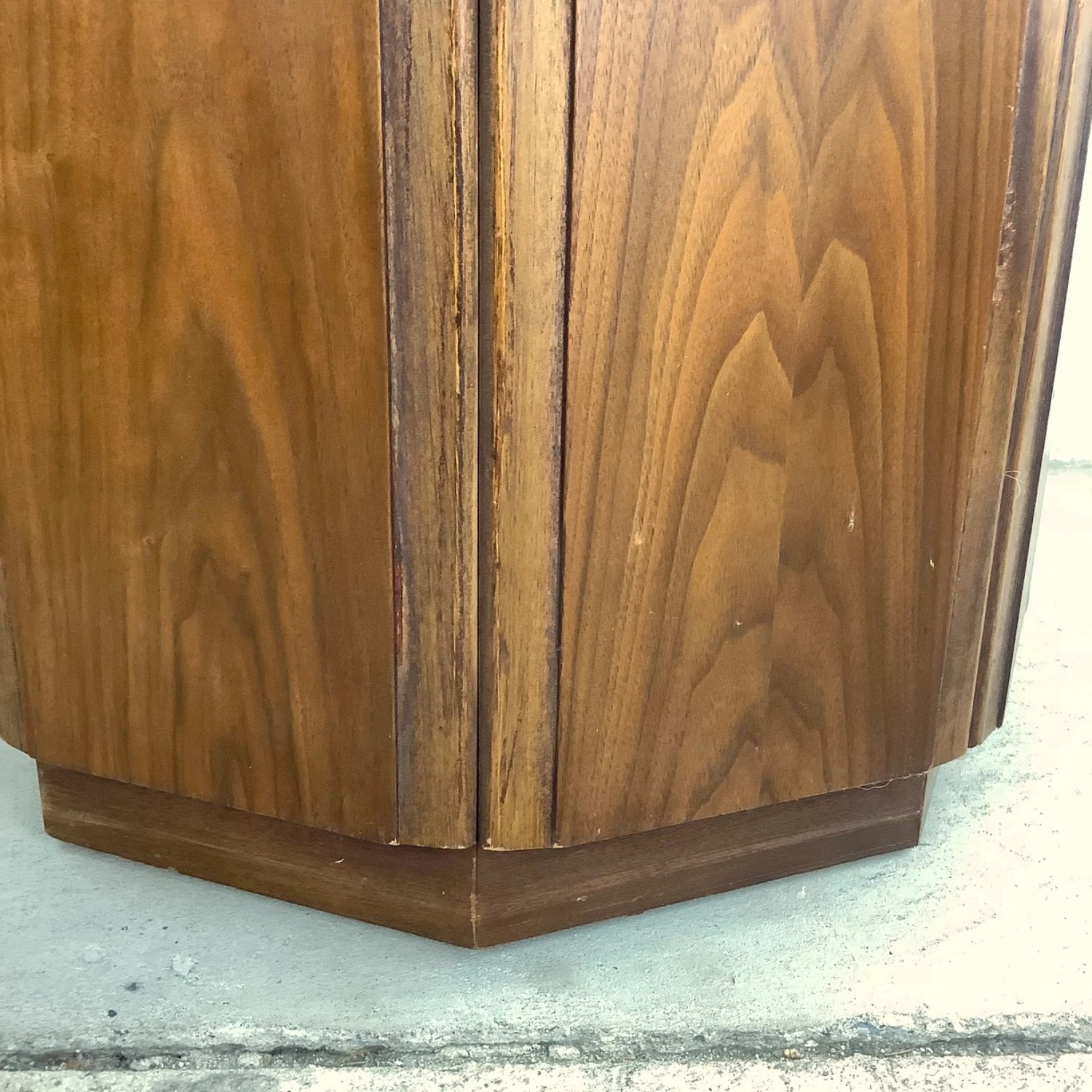 Seller’s Notes: Introducing the Mid-Century Modern Circular Walnut End Table, a stylish and versatile addition to your living space. Crafted with the iconic design elements of the mid-century era, this end table combines sleek lines, warm walnut wood, and a circular shape for a truly captivating piece.