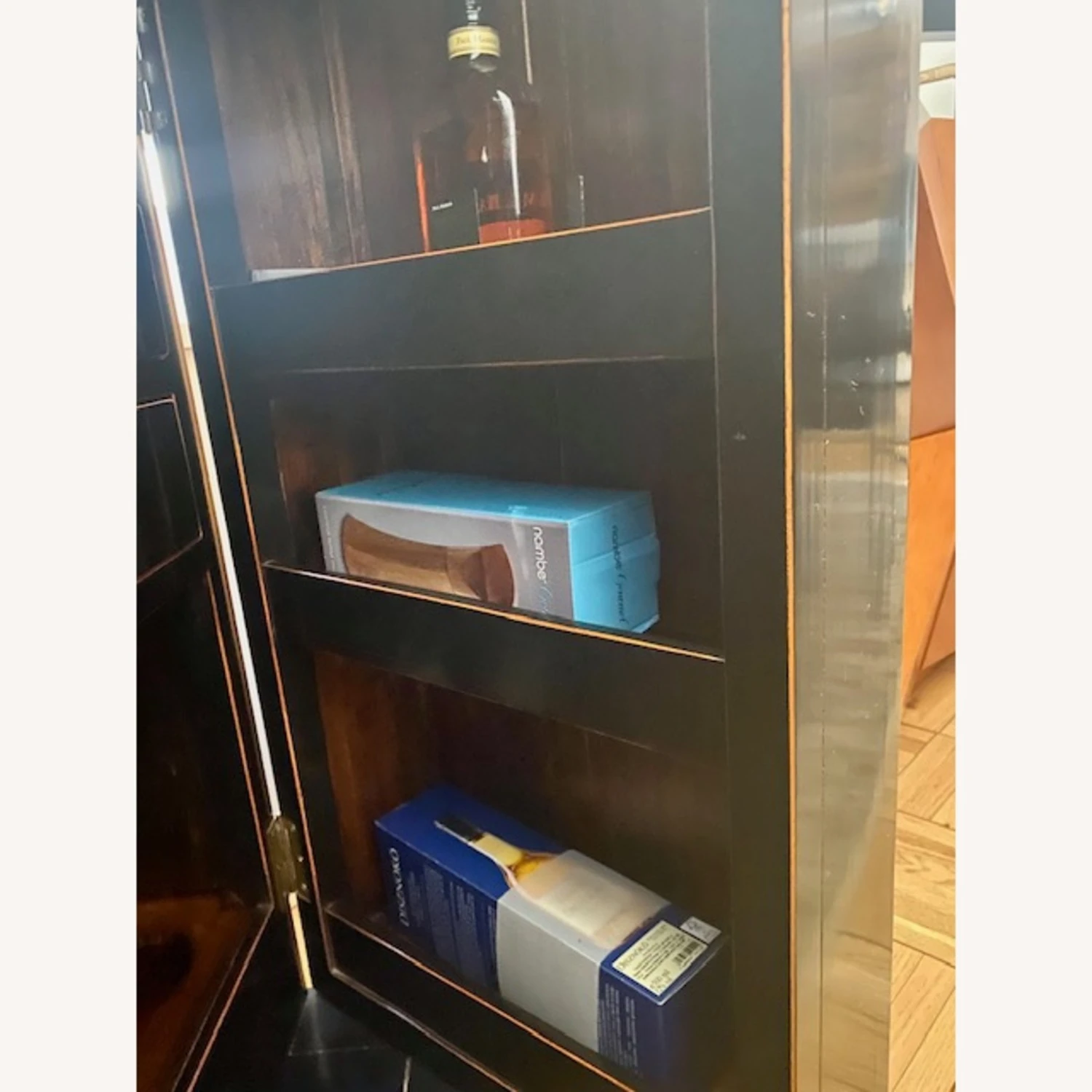 Seller’s Notes: I purchase it in Beijing and it is not only beautiful but helpful to store wine bottles and other bar ware. Holds 19 bottles of wine, has two drawers and few shelves. It is in very good condition. I am selling it because we are moving abroad and downsizing. It will give your home an unique accent!