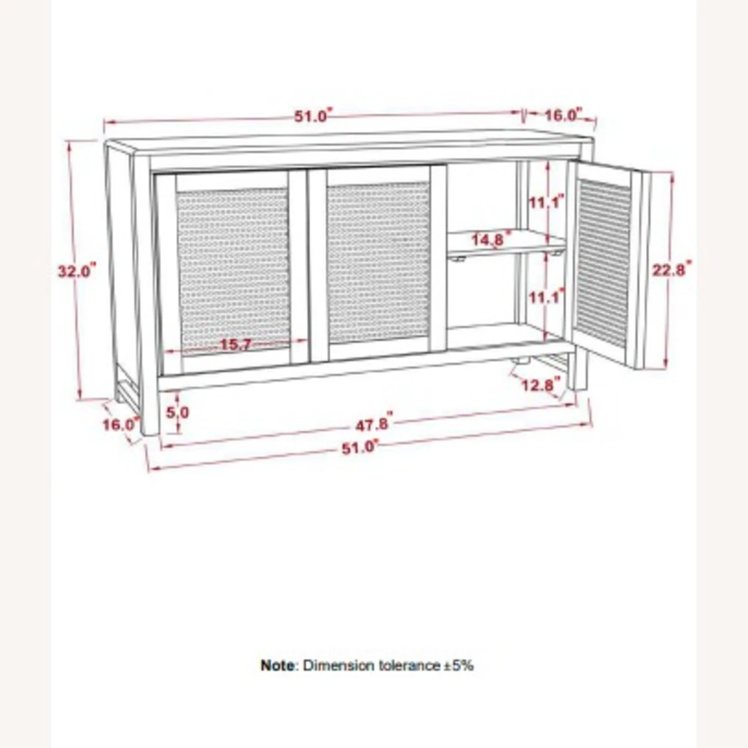 Overall Dimensions: Width: 51 inches, Height: 32 inches, Depth: 16 inches