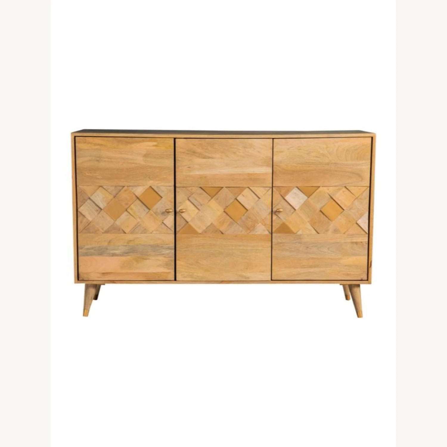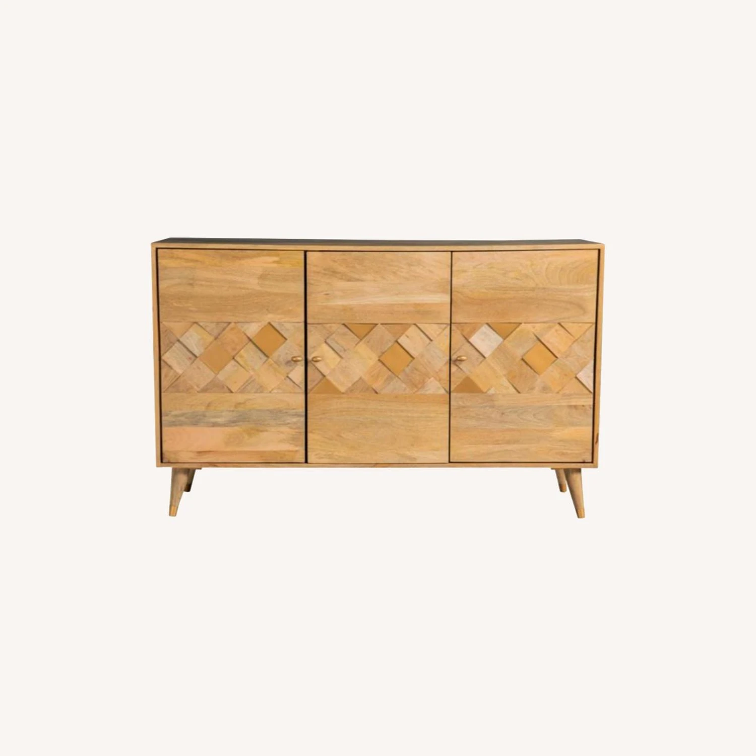 • Unique checkered pattern across the front highlighting the natural wood grains