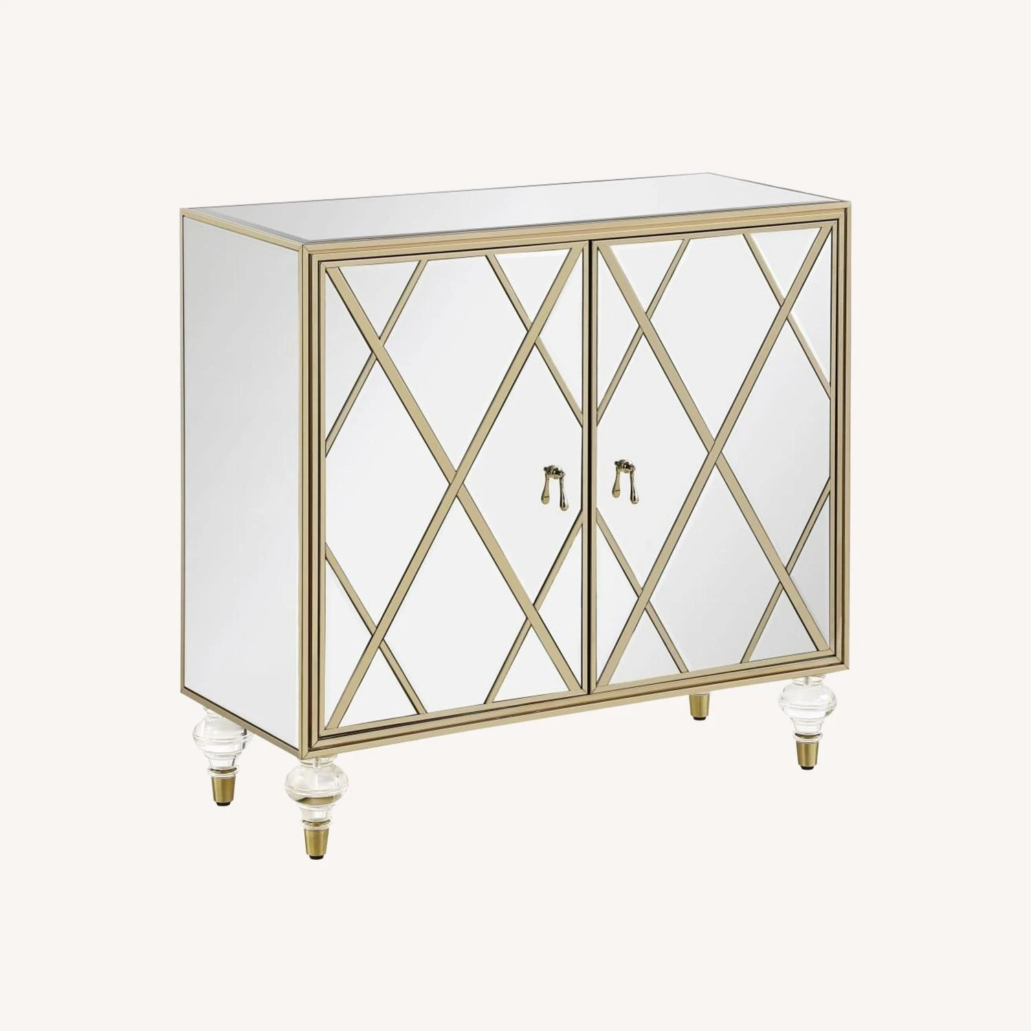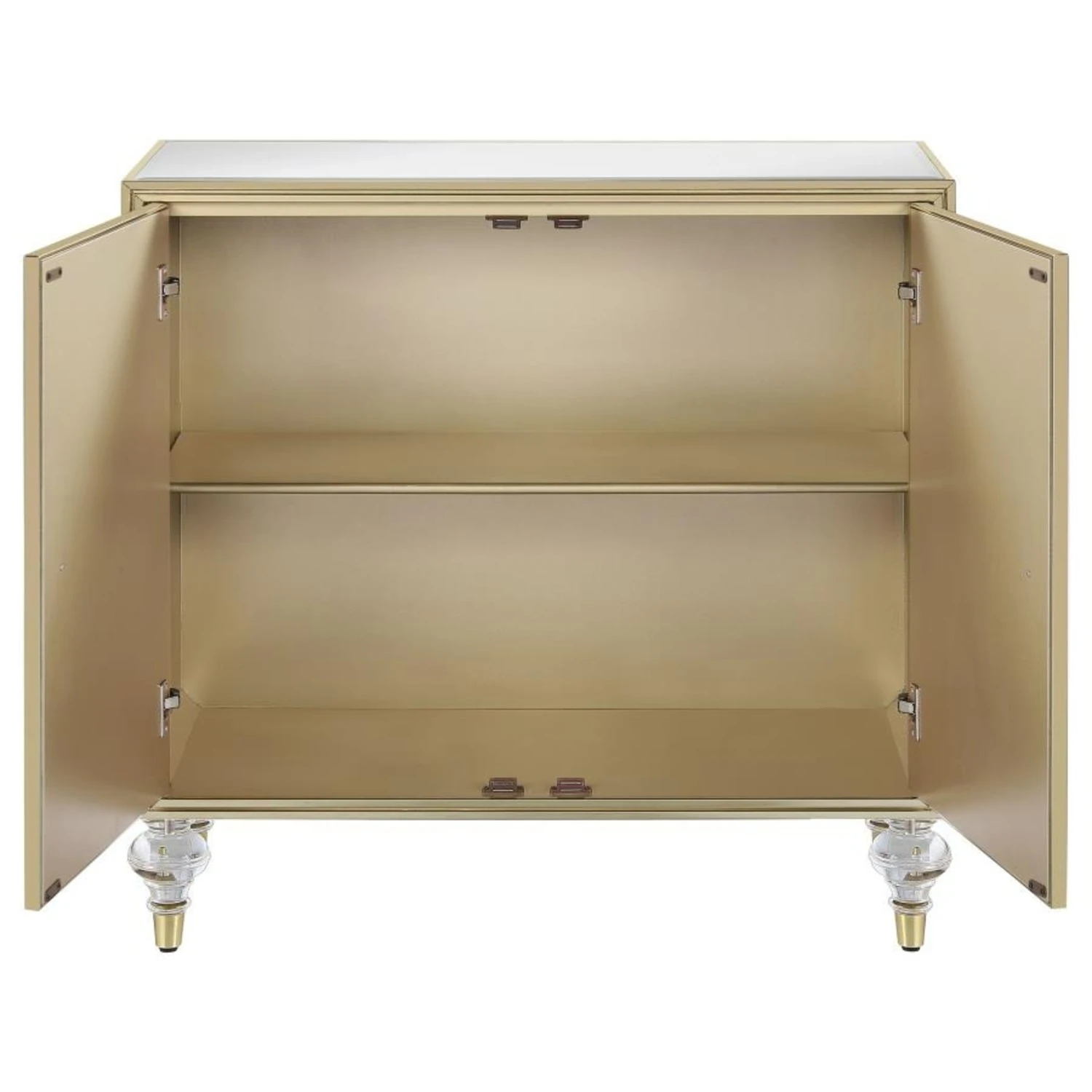 • Turned clear acrylic legs with champagne gold caps