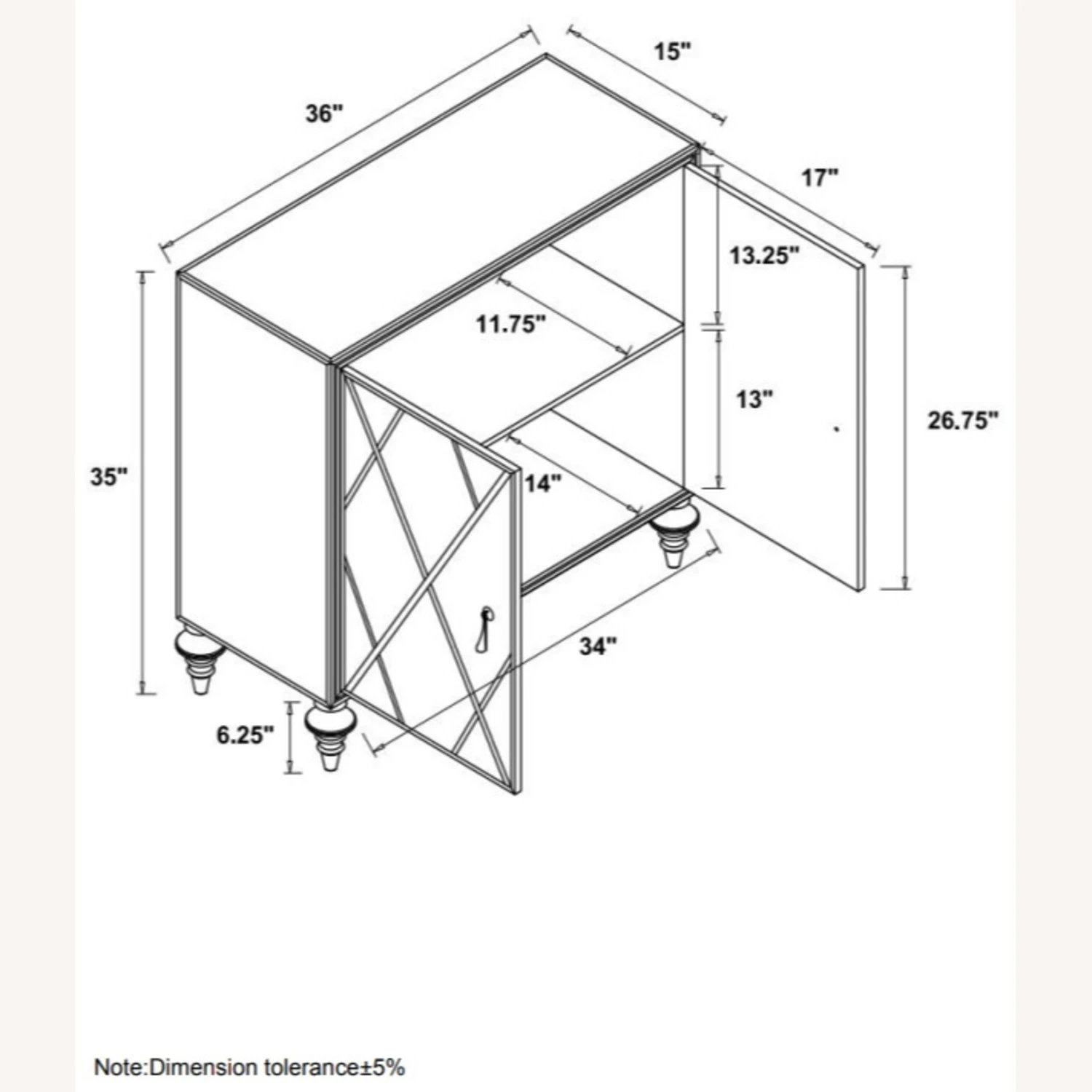 Overall Dimensions: Width: 36 inches, Height: 35 inches, Depth: 15 inches