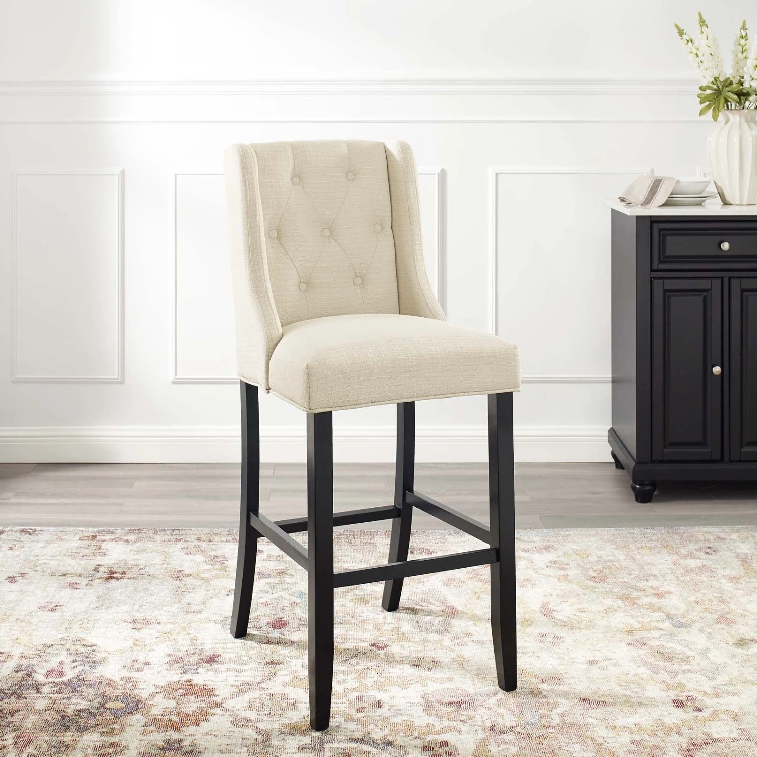 • Bestow splendor with this tufted button upholstered fabric bar stool.