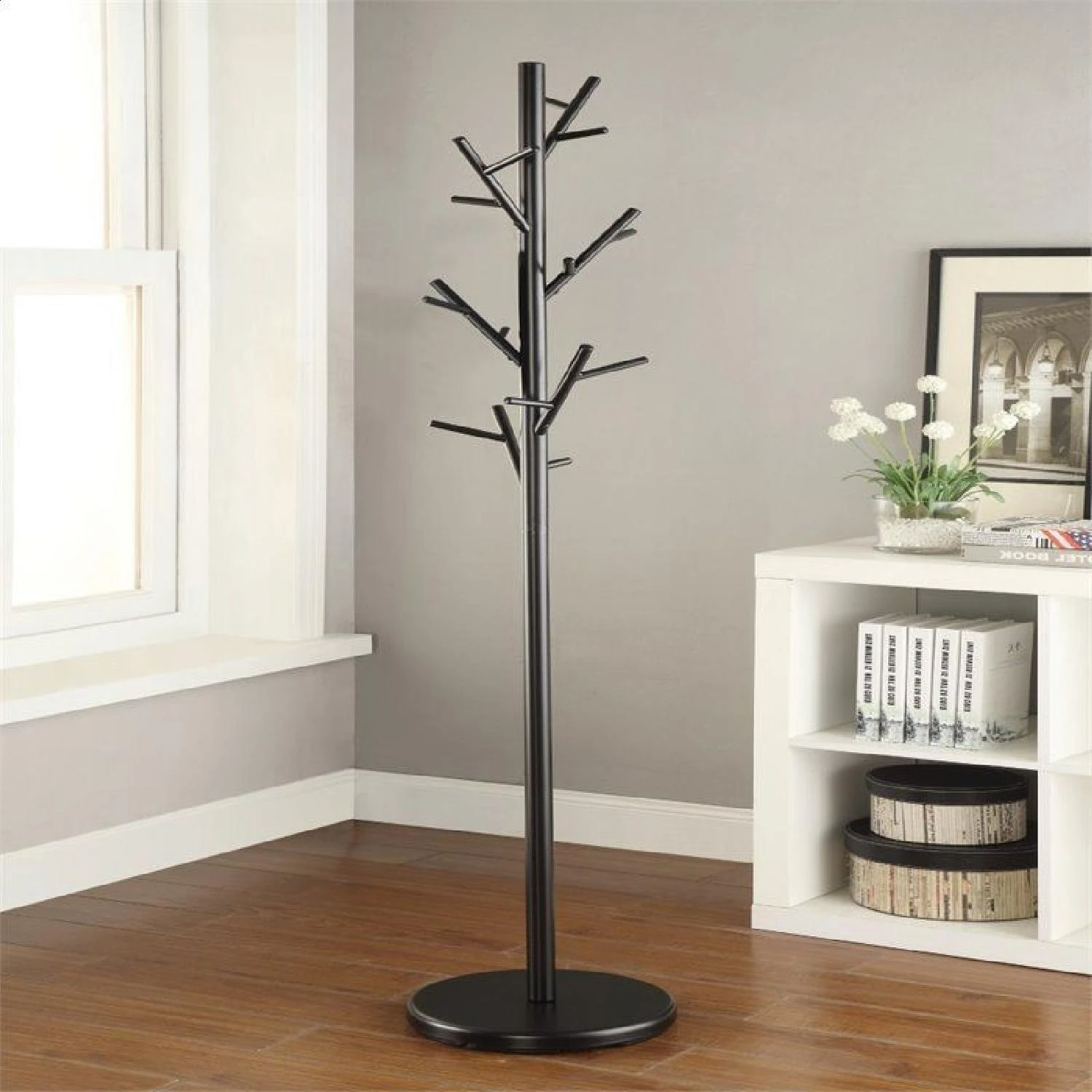 • Black coat rack is inspired by bare tree branches