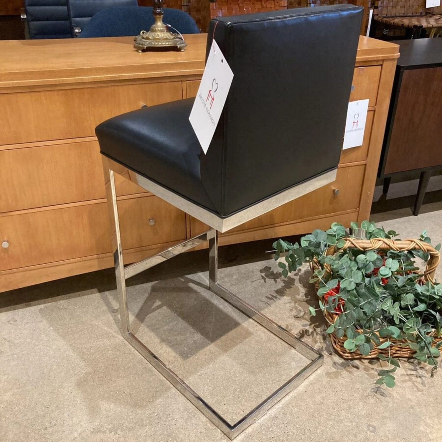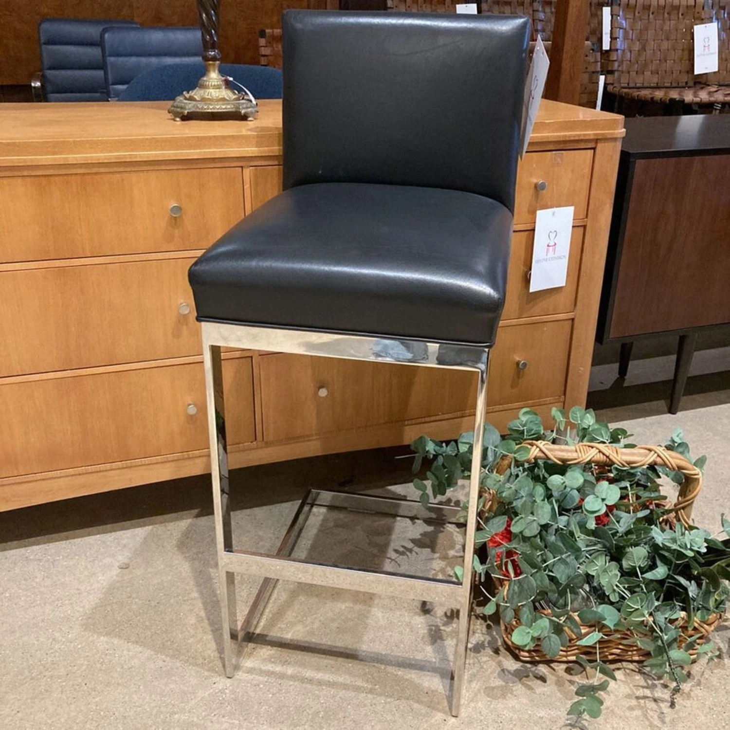 Seller’s Notes: The Angle Stool is a modern compact stool available in bar height or counter height, featuring an exposed brushed stainless steel frame.