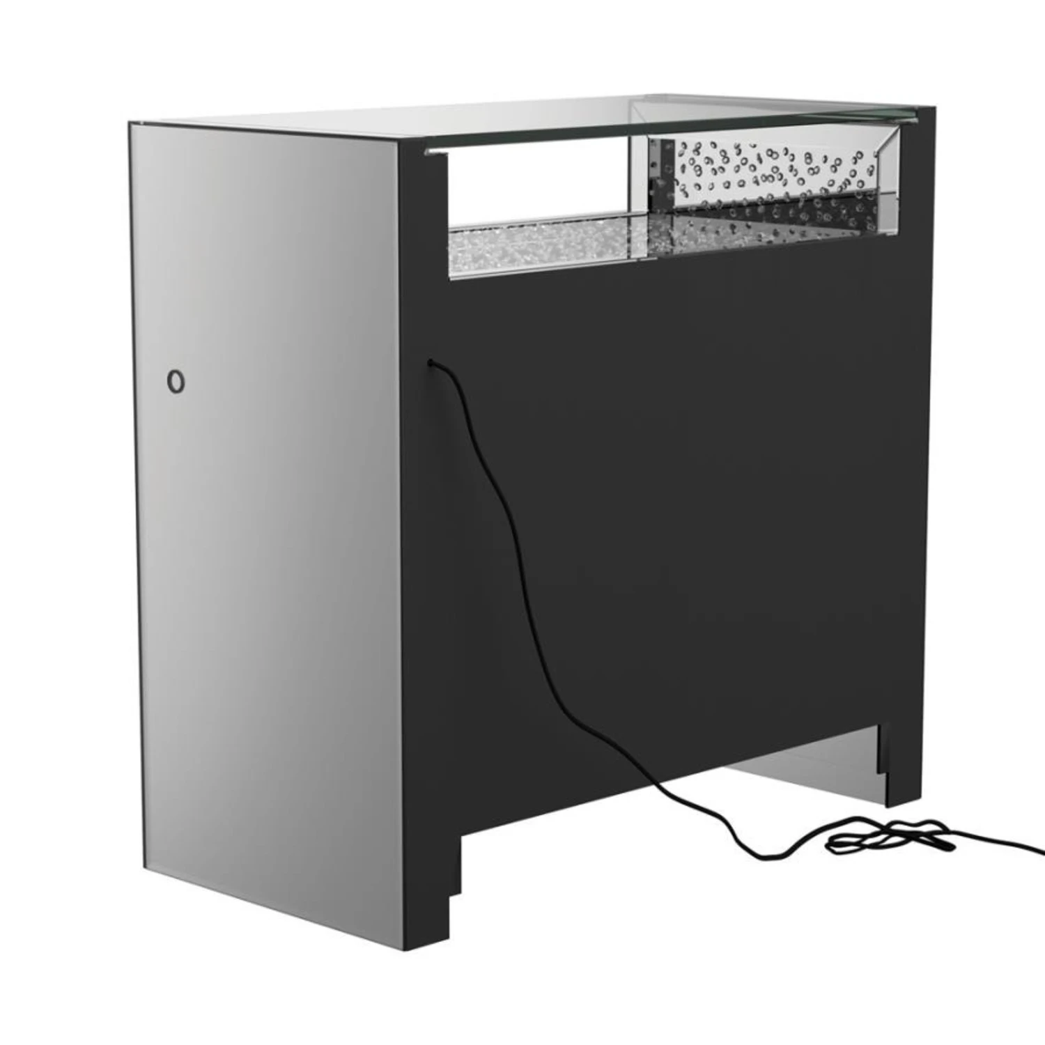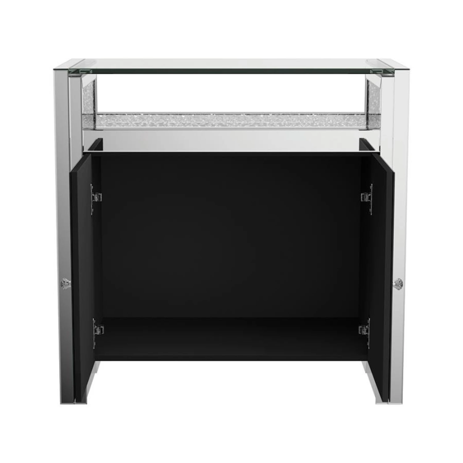 • Two cabinet doors offer additional storage options