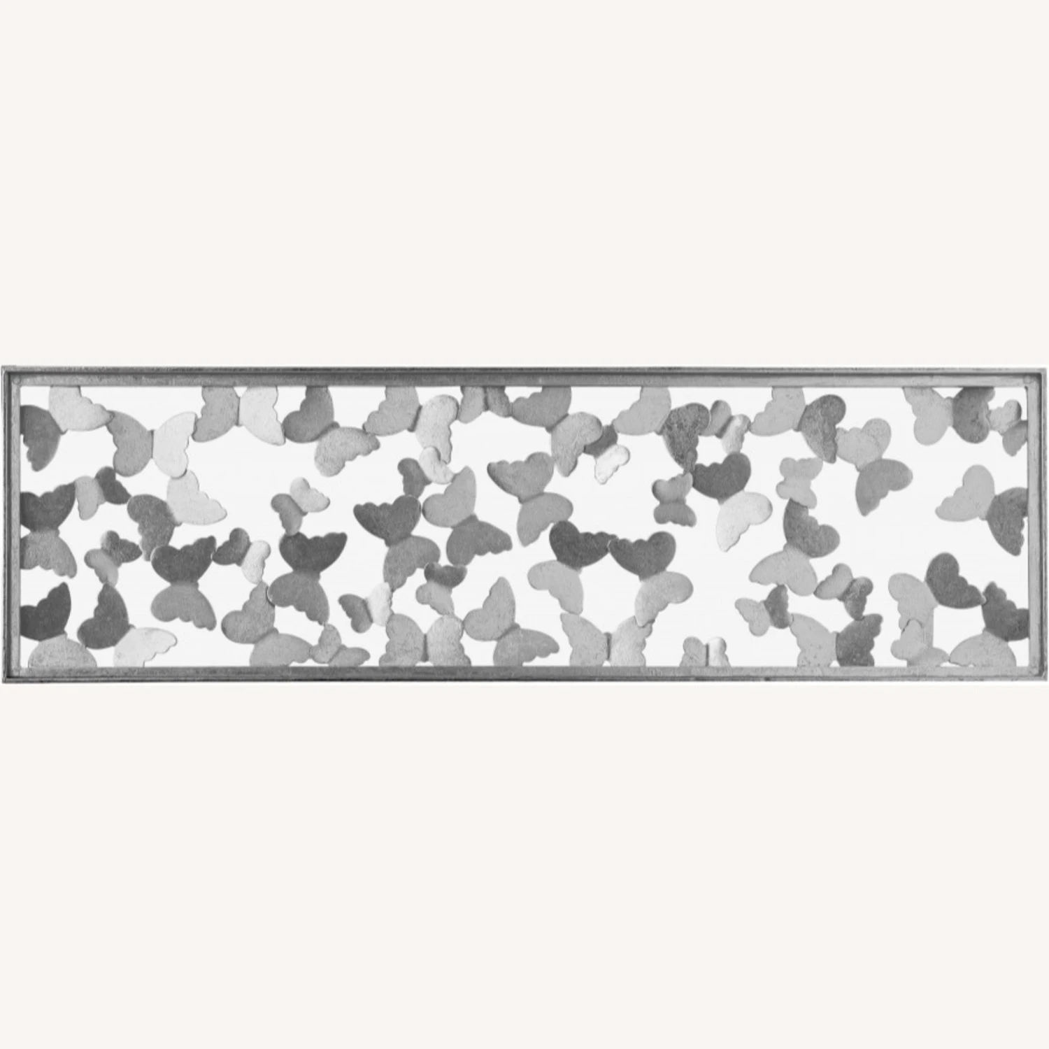 • A lovely silver foil design across the top of the table featuring a bevy of butterflies adds instant visual appeal to your space.