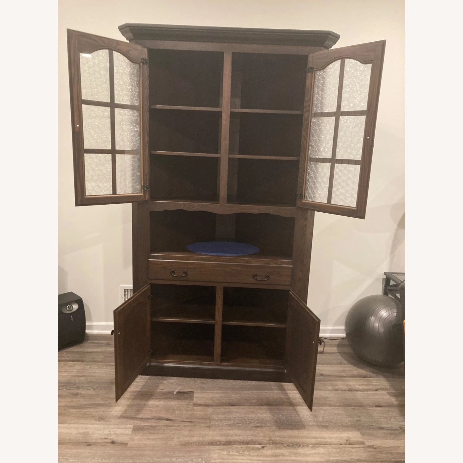 Seller’s Notes: Black metal handles and knobs. Maximum shelf depth 20″. Built-in lighting.
