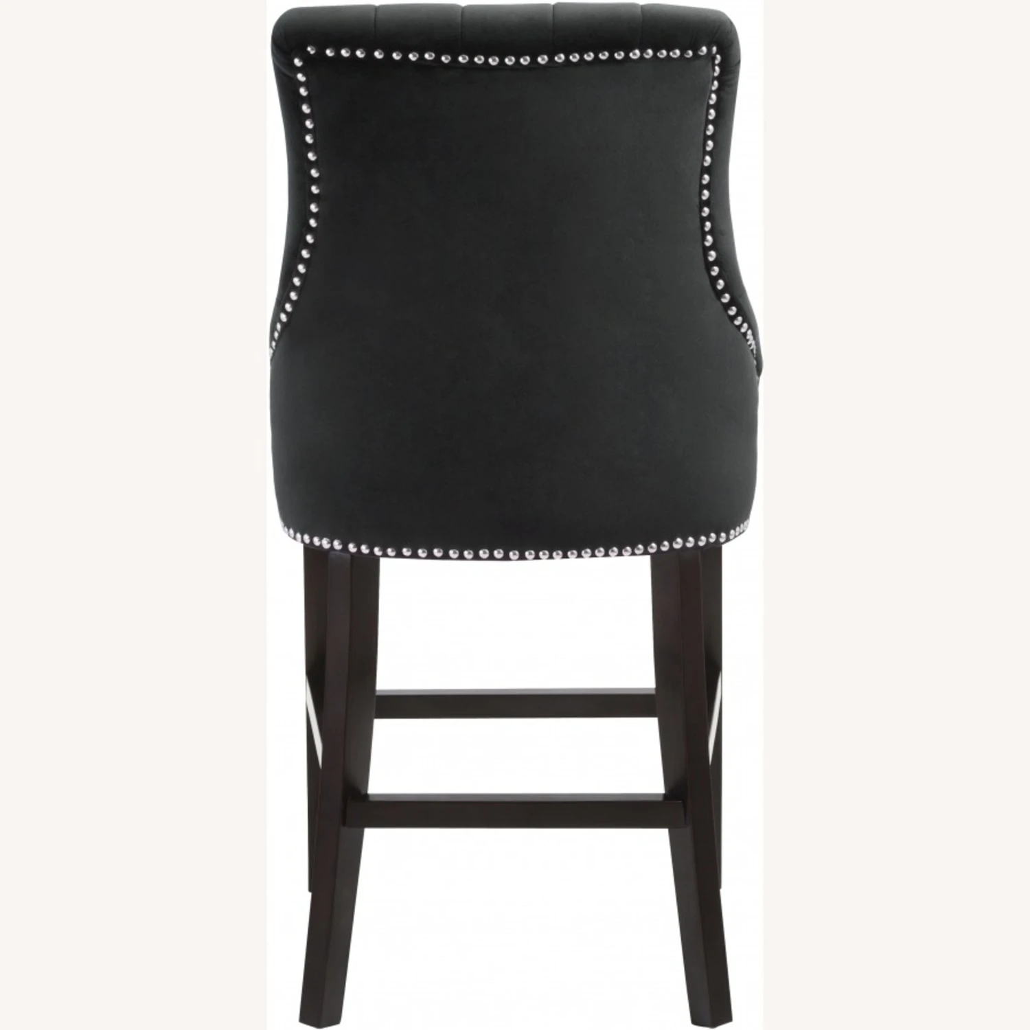 • The back of the seat has deep button tufts for a posh look, while the front features smooth velvet upholstery for sleek comfort.