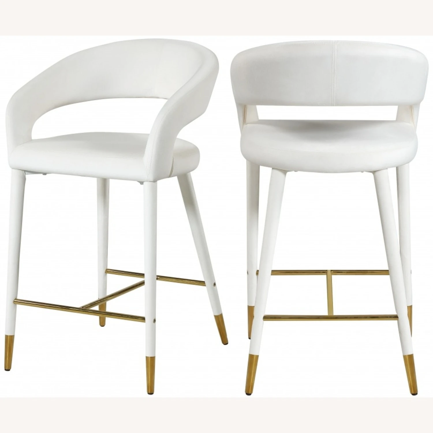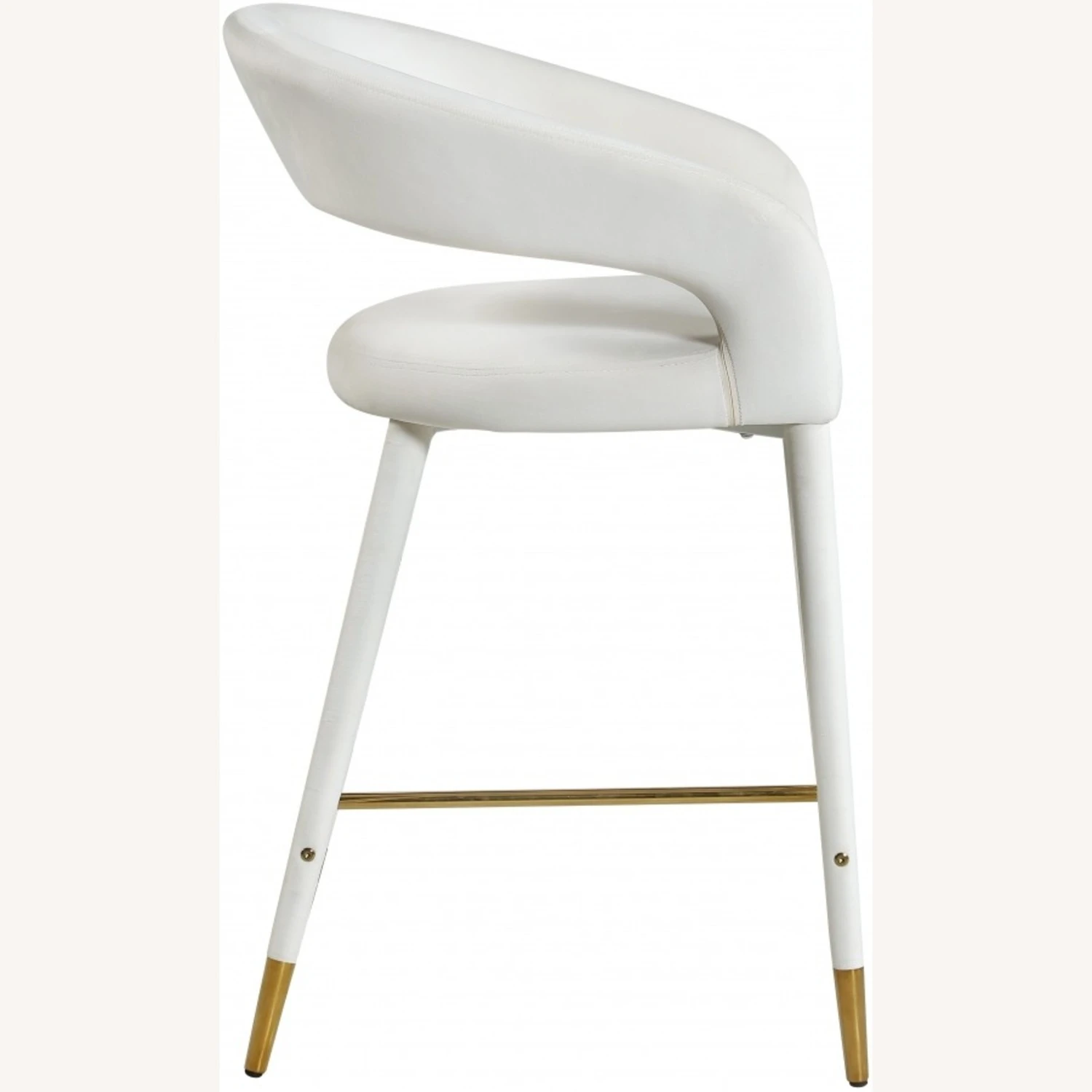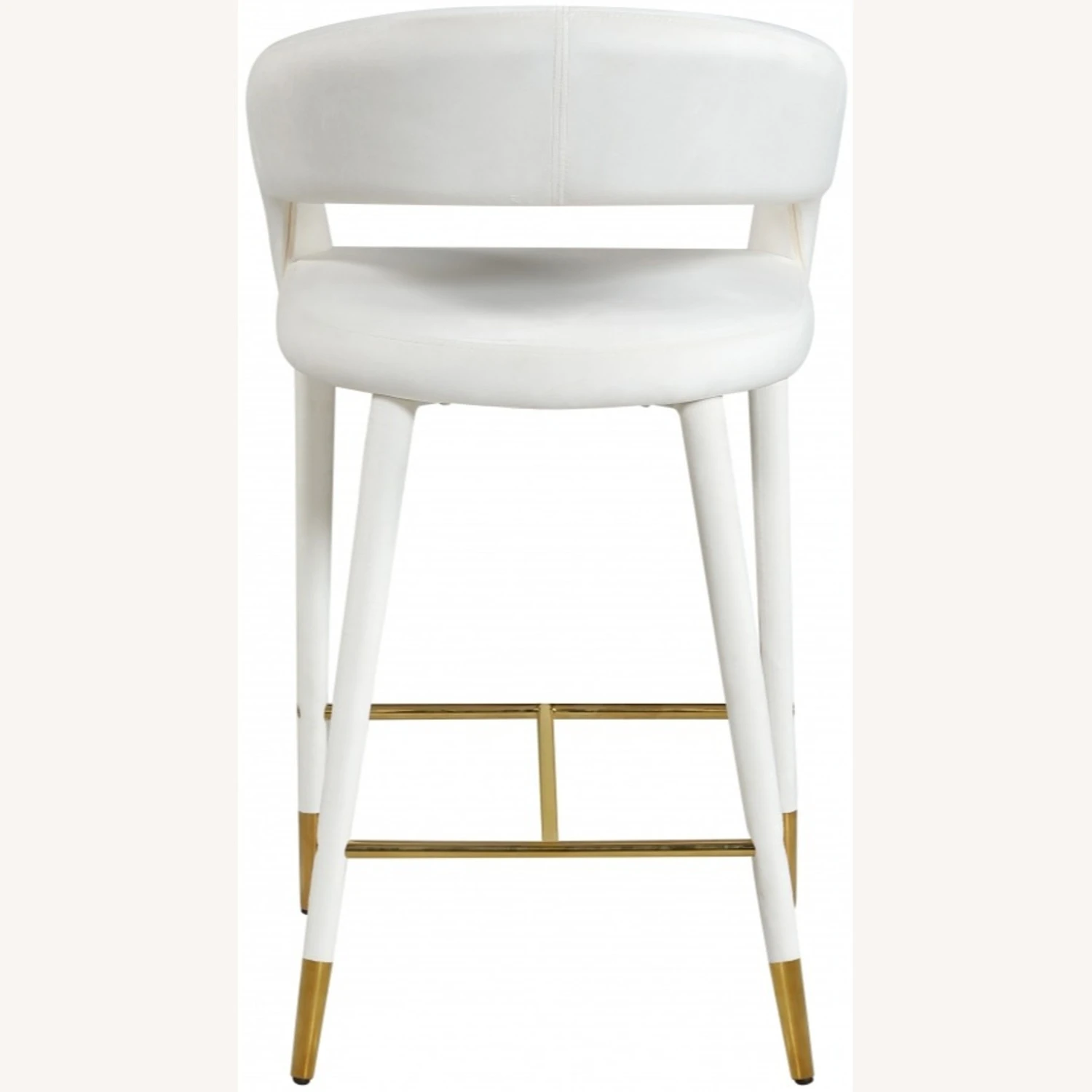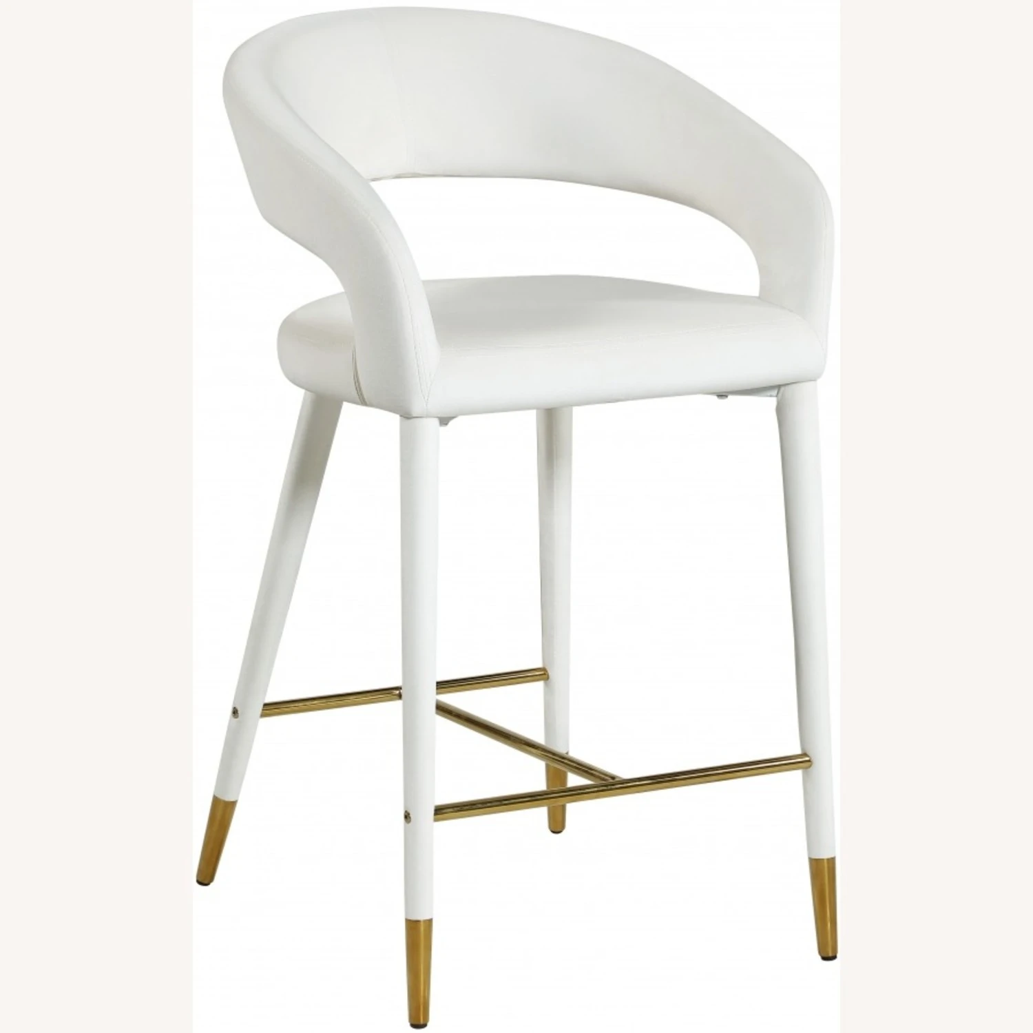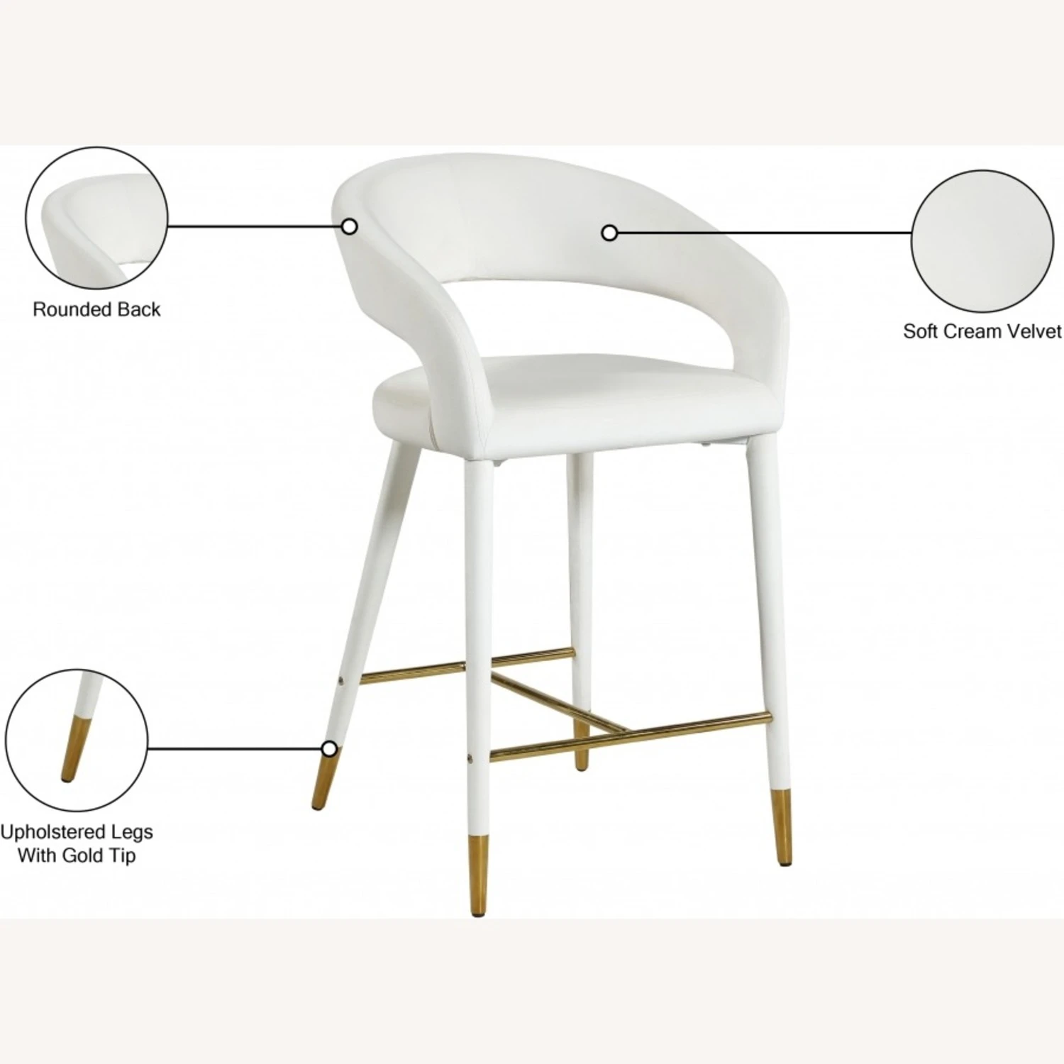• The rounded back adds comfort to mealtime and lends the stool a chic, eye-grabbing touch, while tapered legs topped with gold tips give the stool an elegant finish.