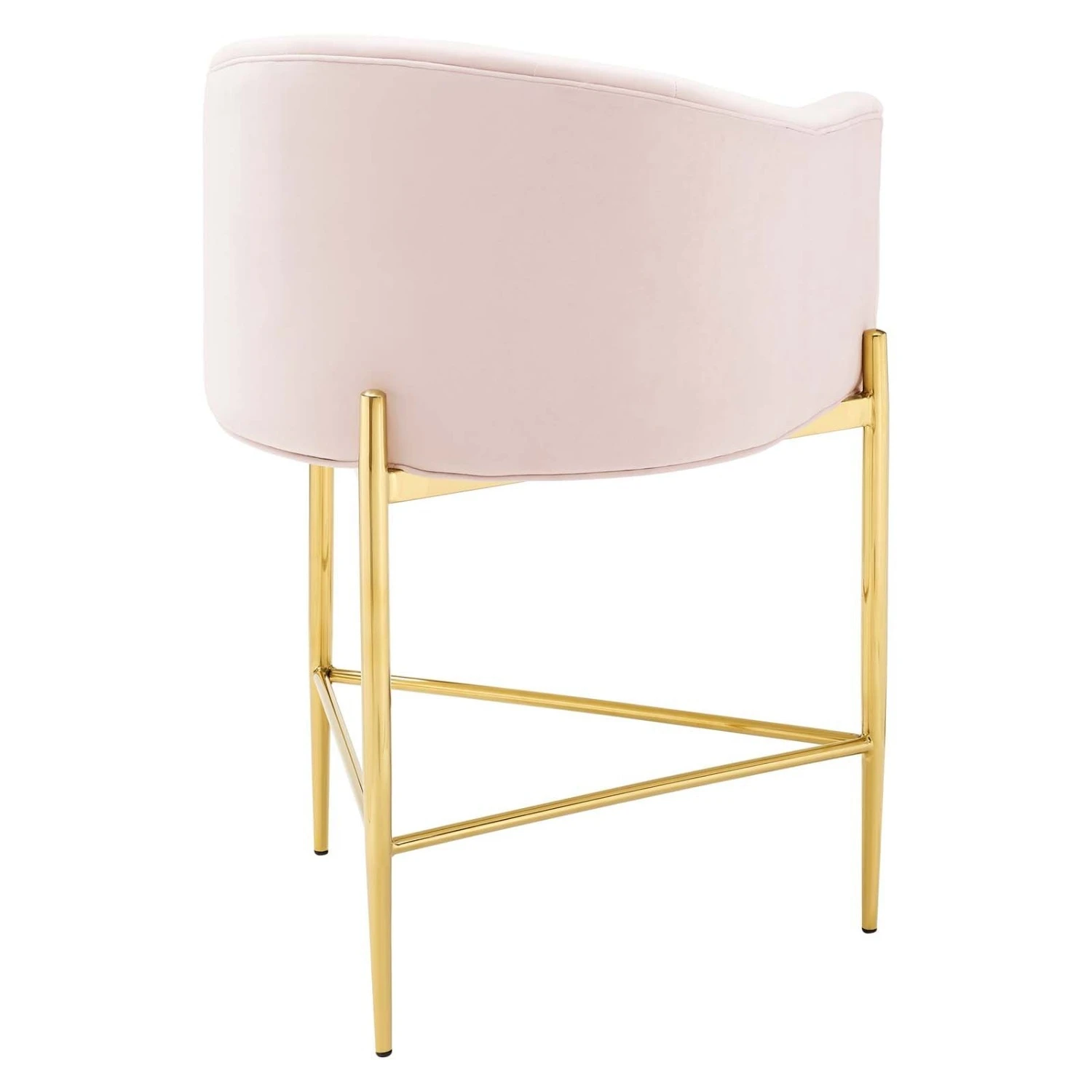 • Featuring a sweeping silhouette and updated club chair design, this velvet stool is suited for a counter-height pub table or kitchen island.