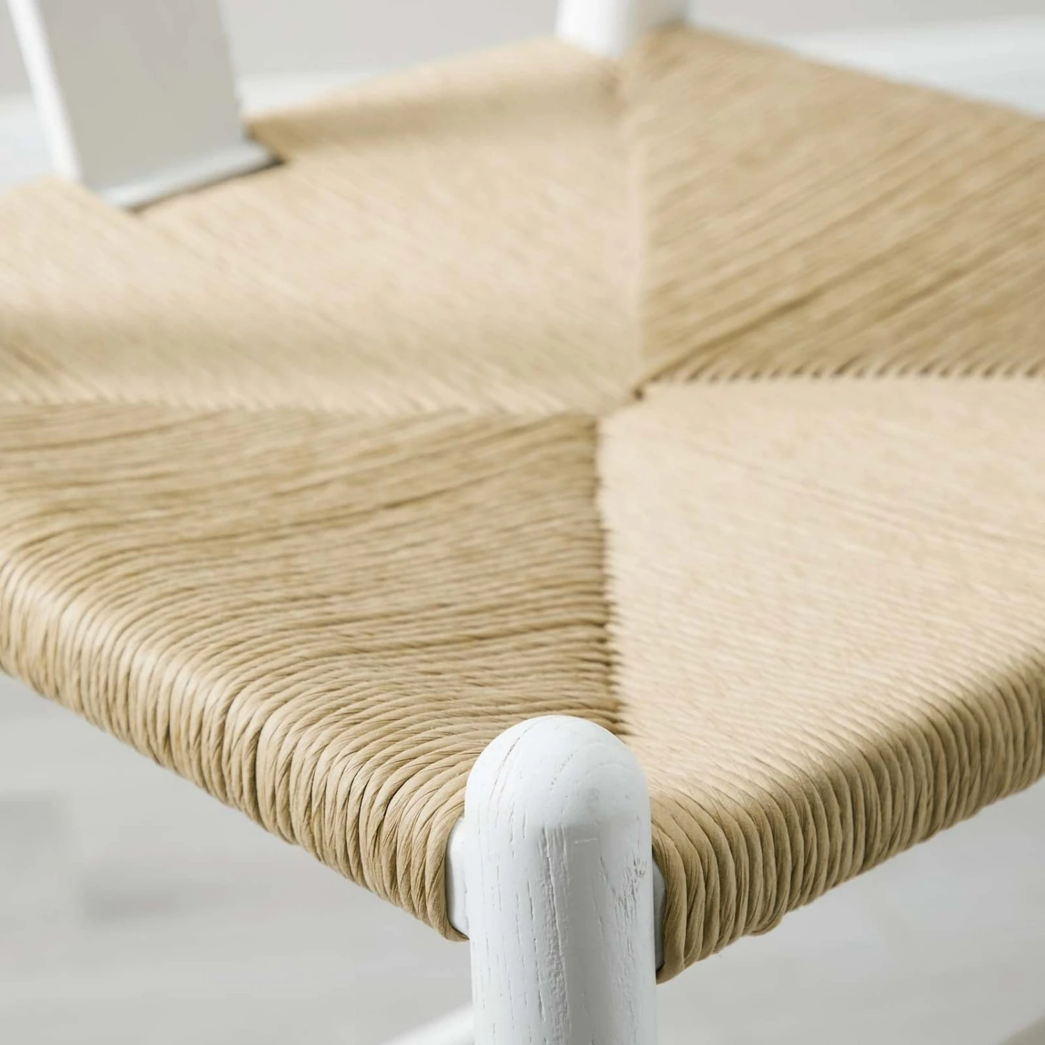 • A woven paper rope seat ties in a solidly constructed wooden stool for your living room, lounge room, bistro, cafe, and bar area decor.