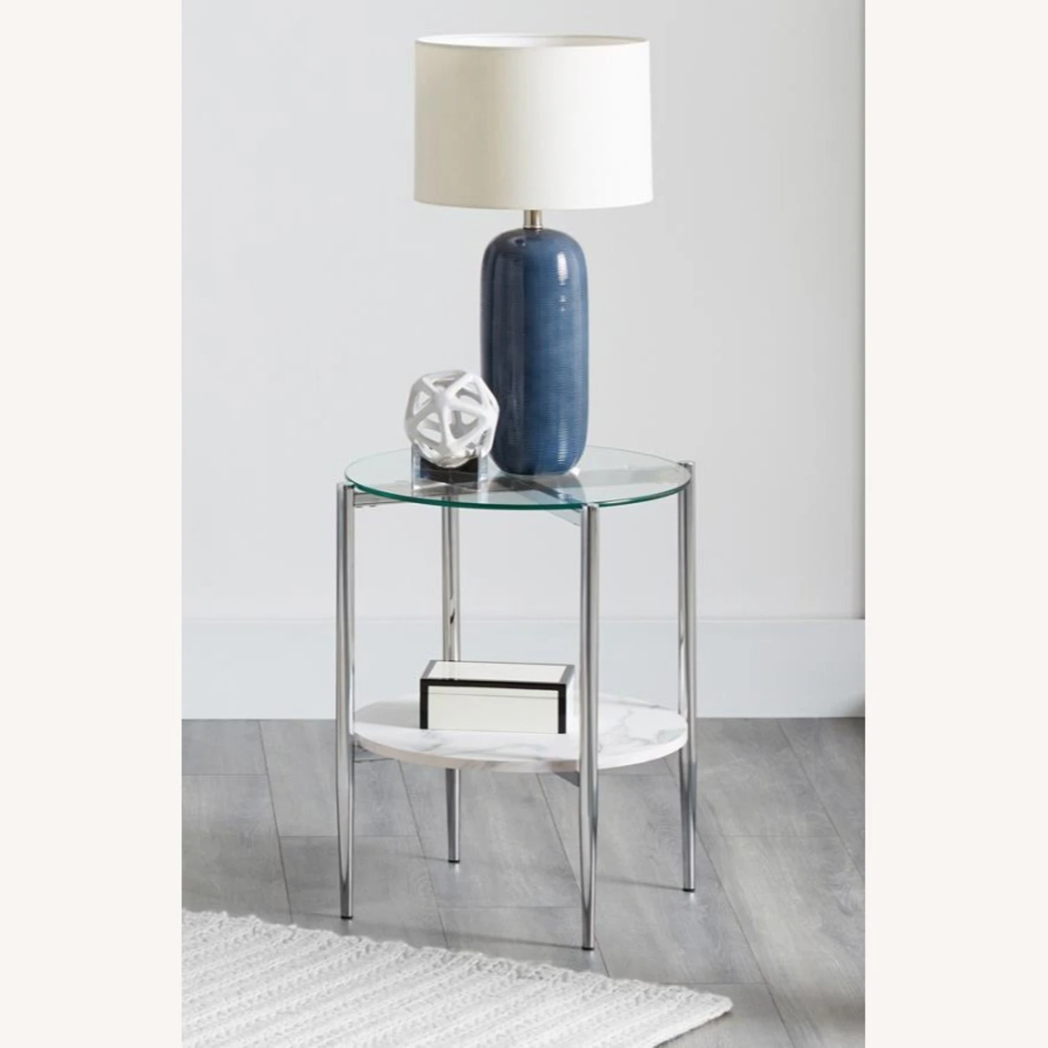 FINISH: FAUX CARRARA MARBLE / CHROME