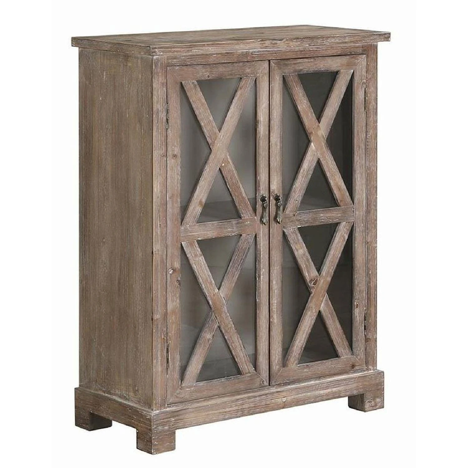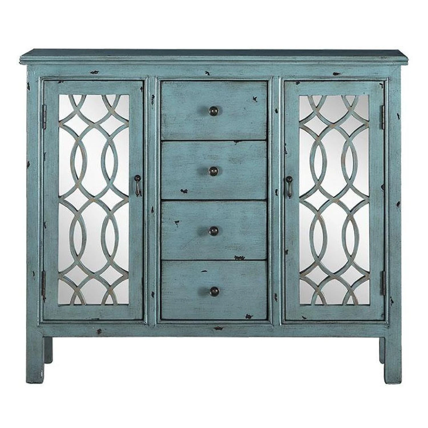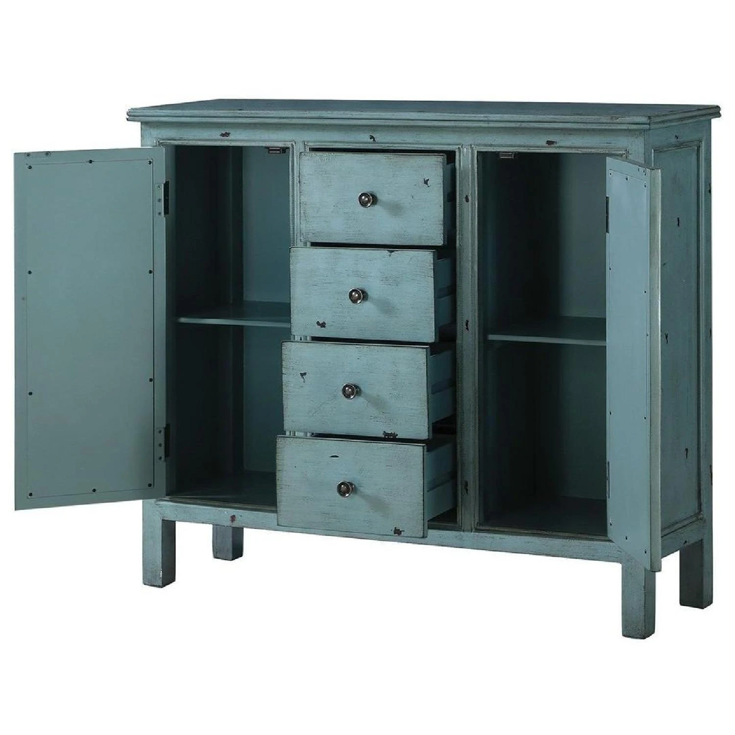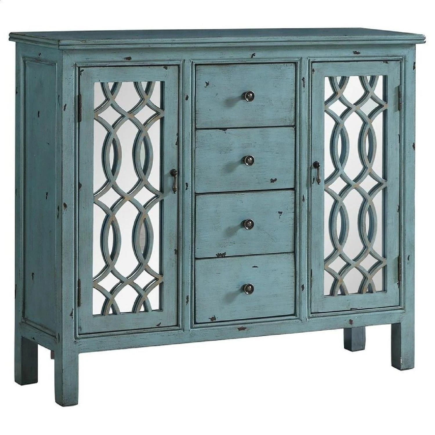 • Accent cabinet in antique blue finish add rustic charm to any space