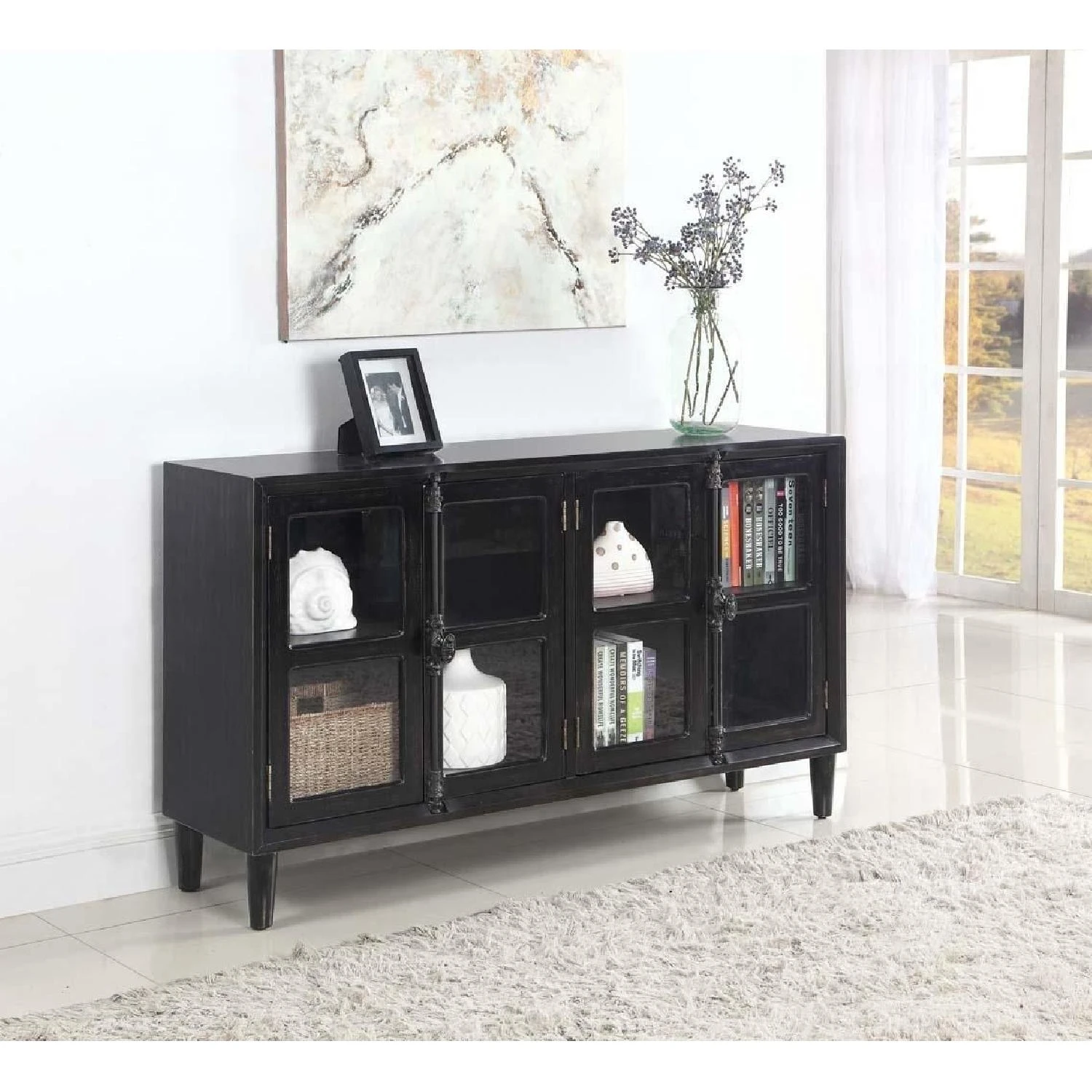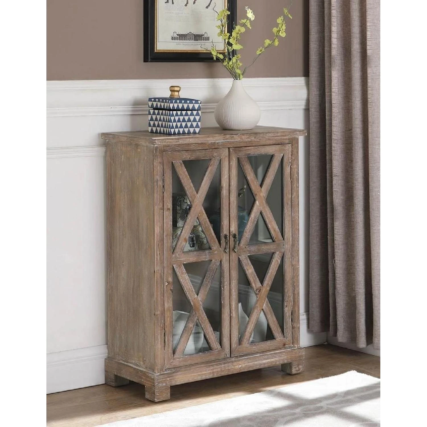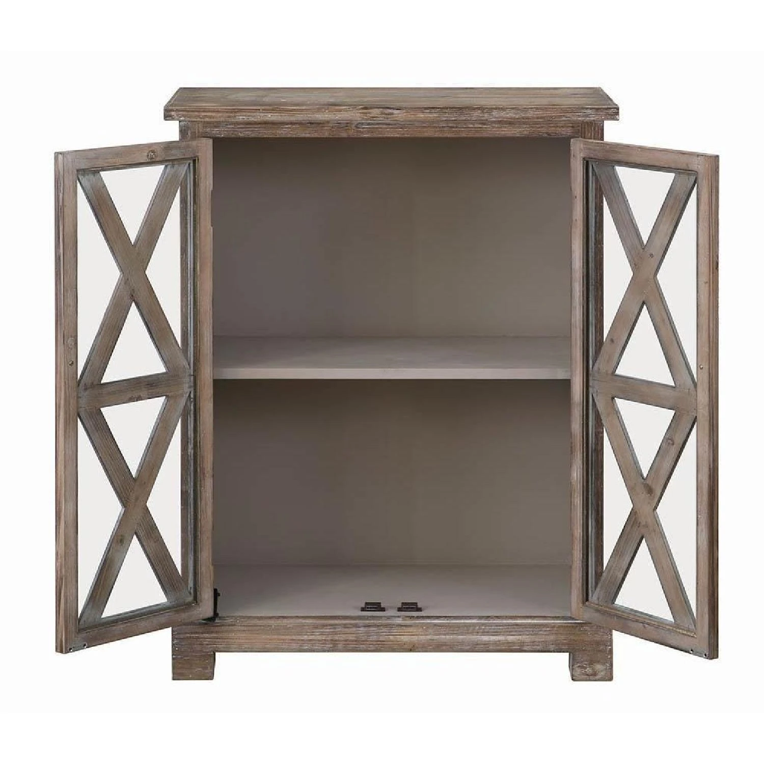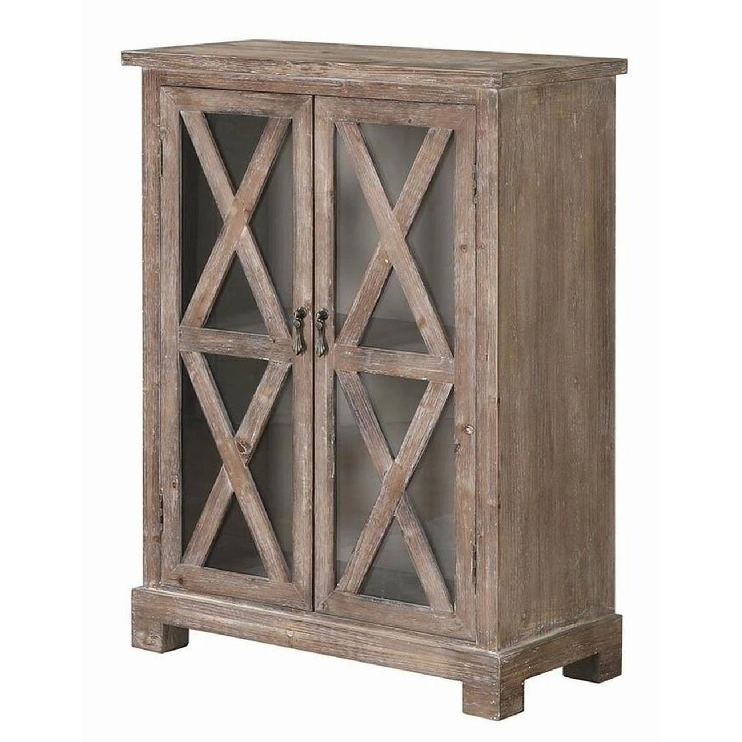• Accent cabinet in antique blue finish add rustic charm to any space