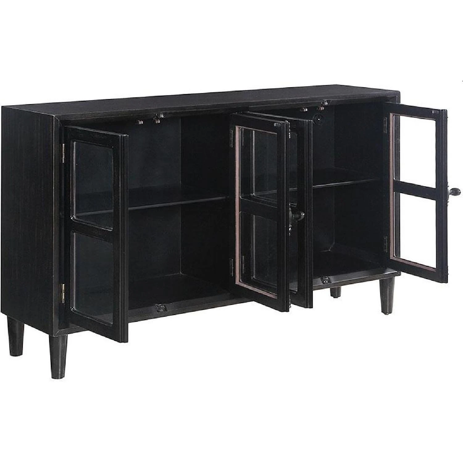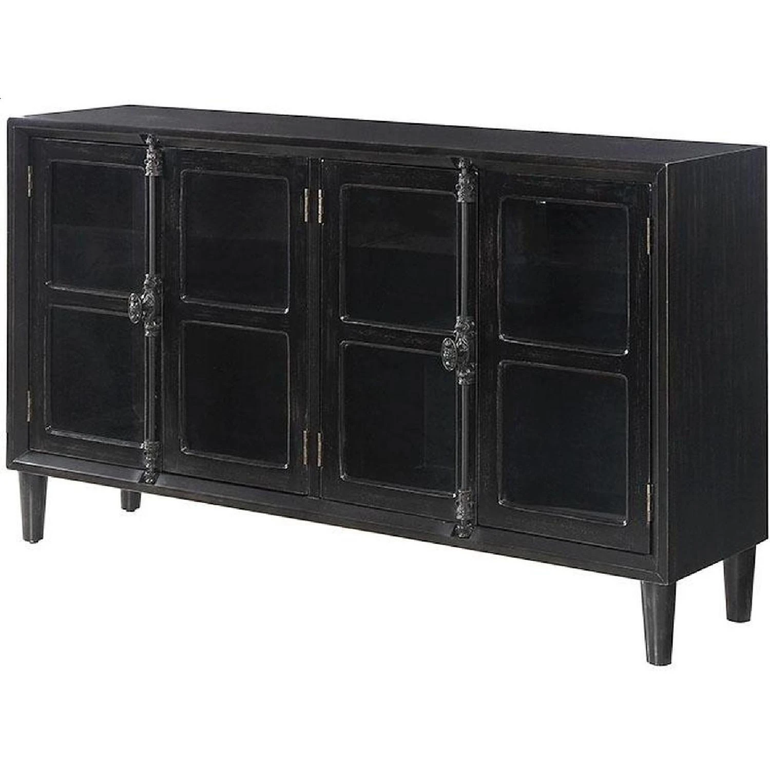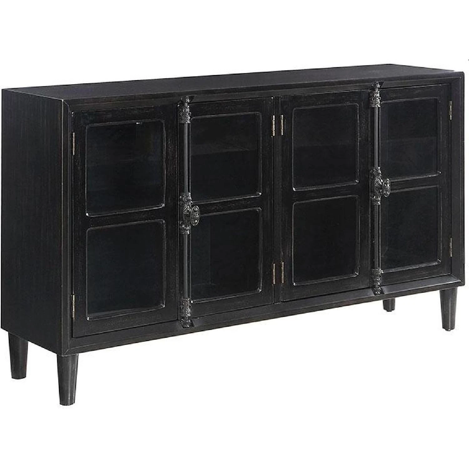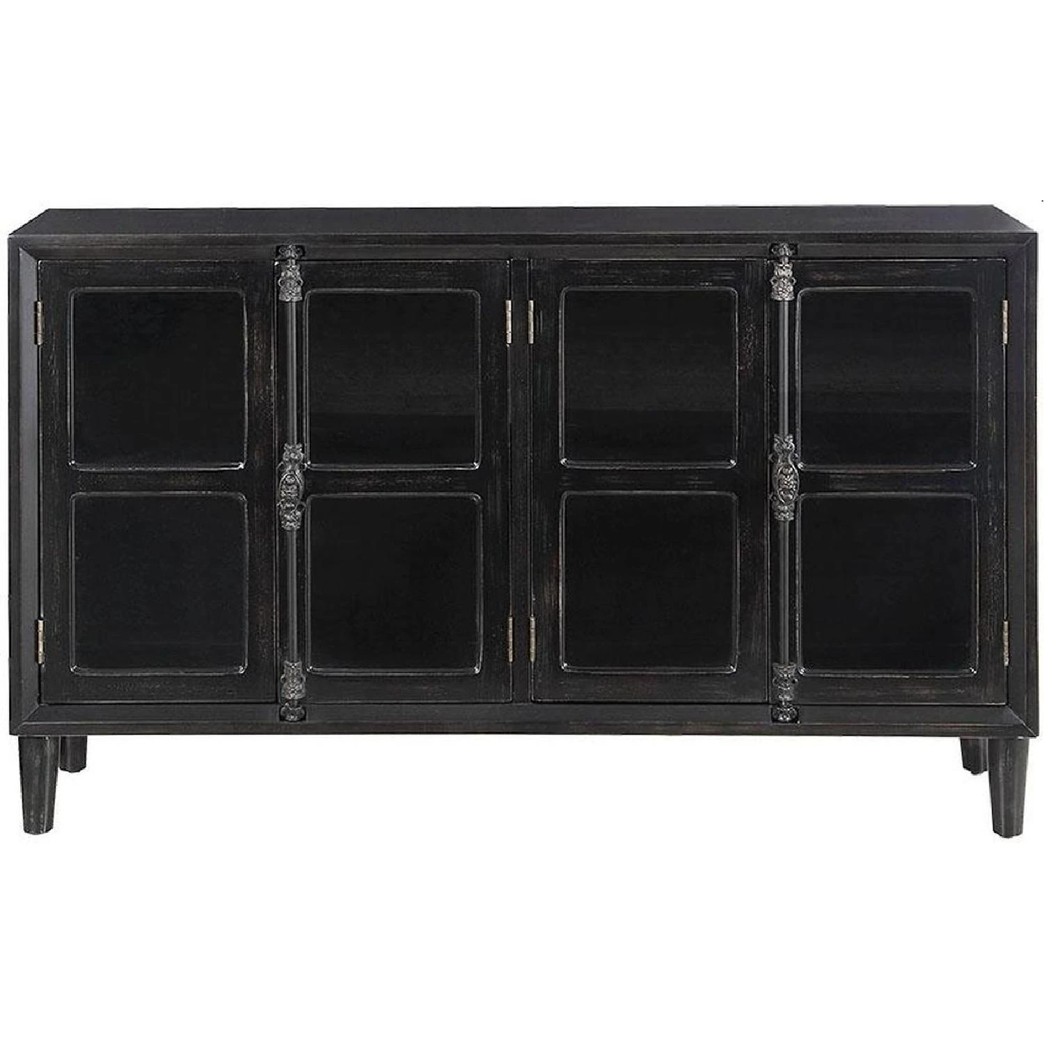 • Accent cabinet in antique blue finish add rustic charm to any space