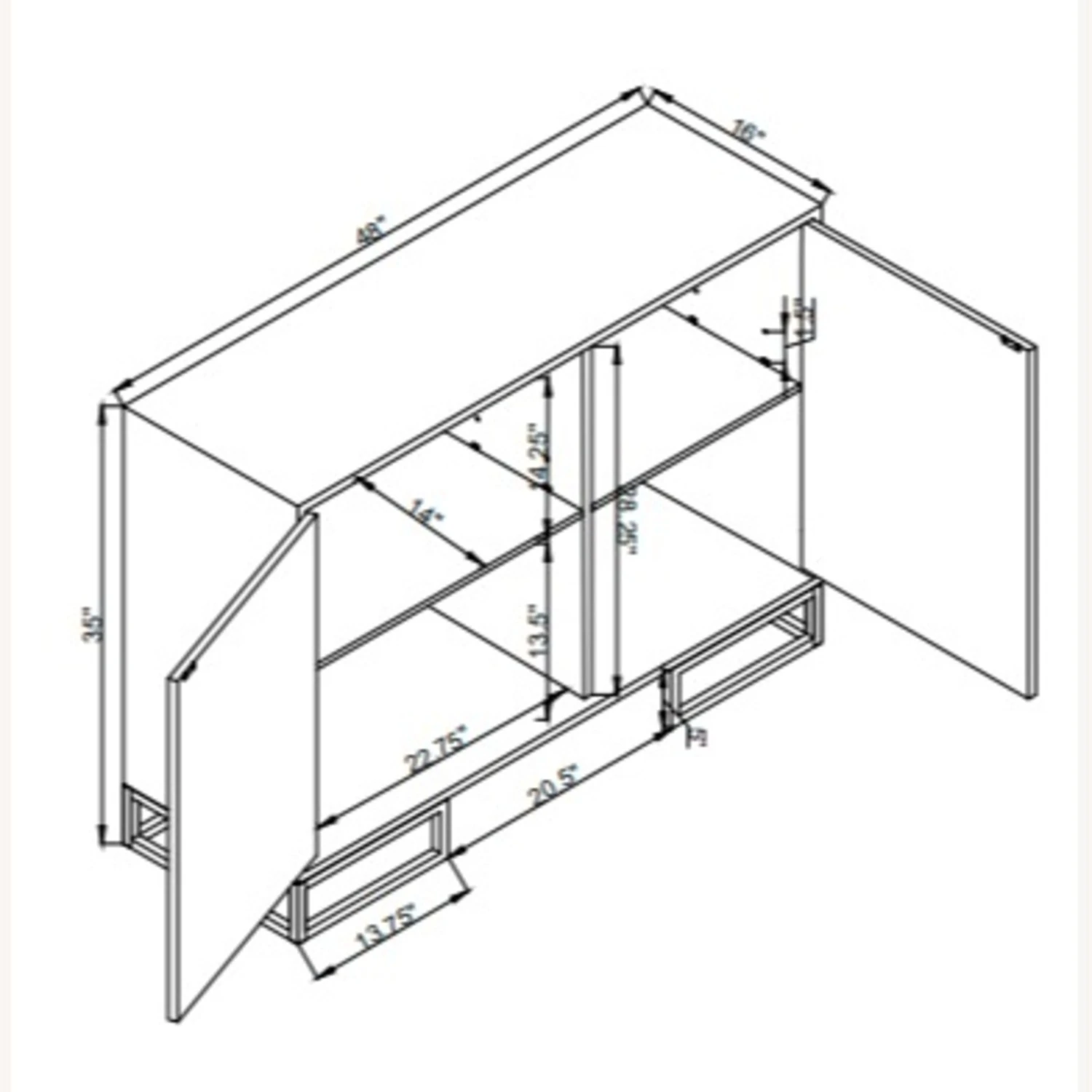 Overall Dimensions: Width: 48 inches, Height: 35 inches, Depth: 16 inches