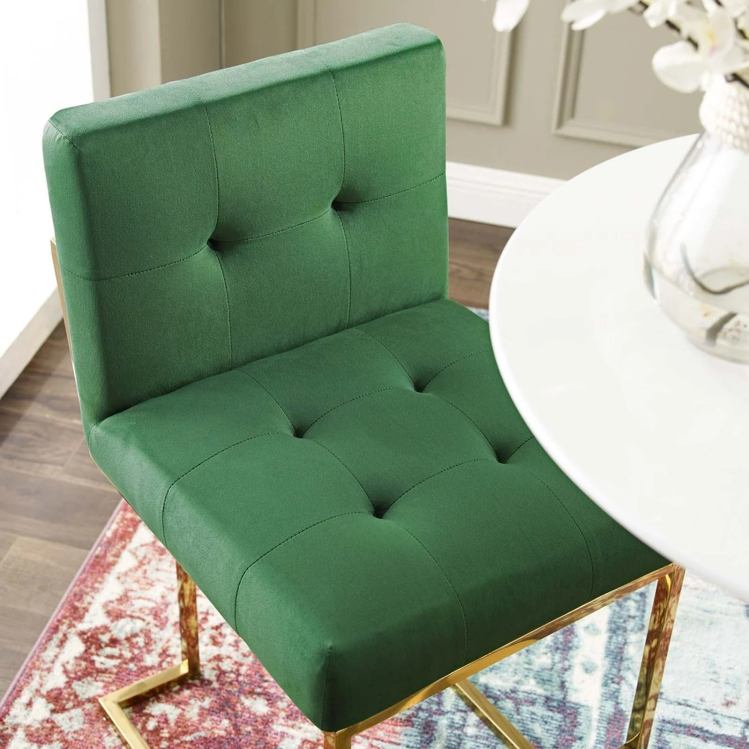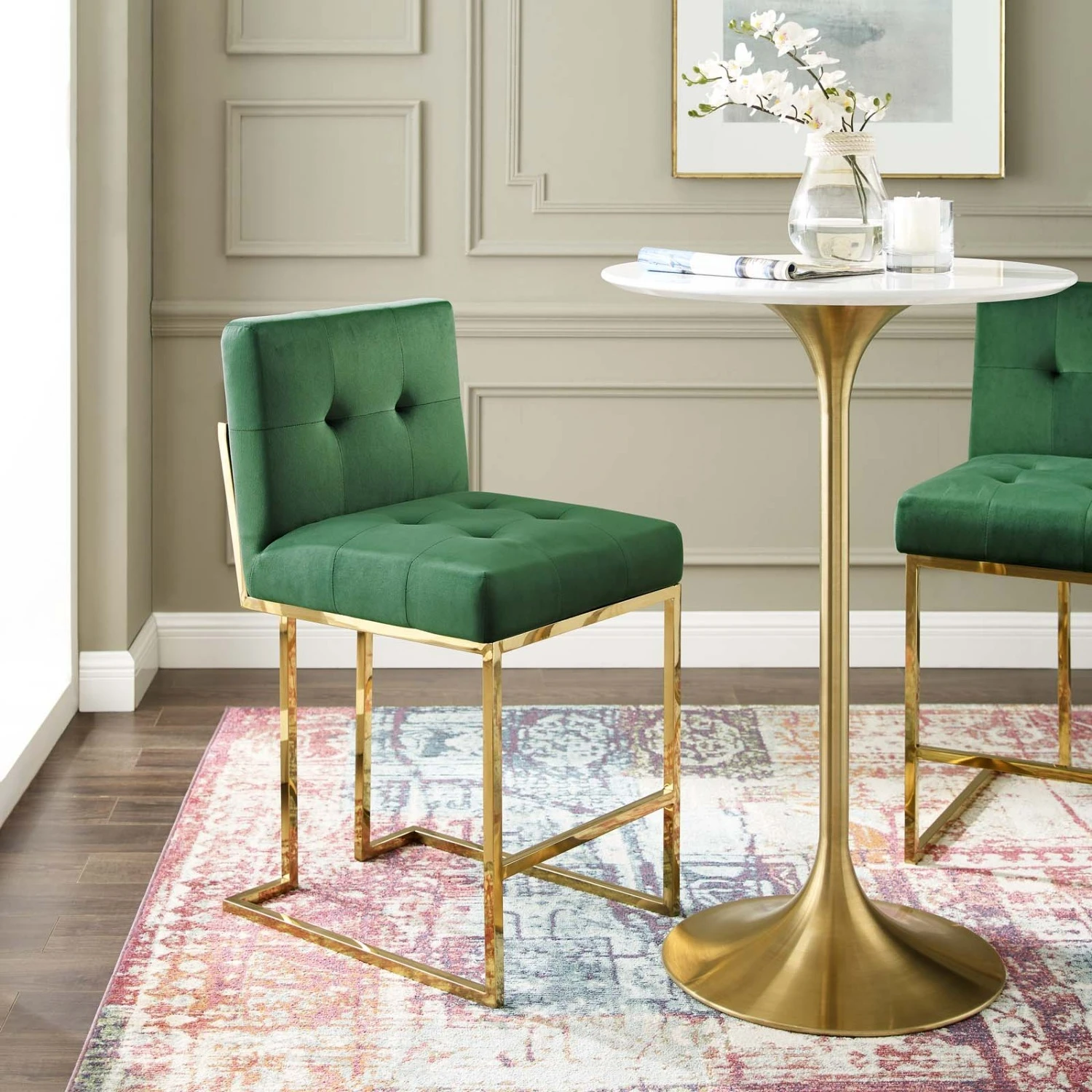 • A glam deco kitchen counter stool, it features soft and stain-resistant performance velvet upholstery for a streamlined modern look.
