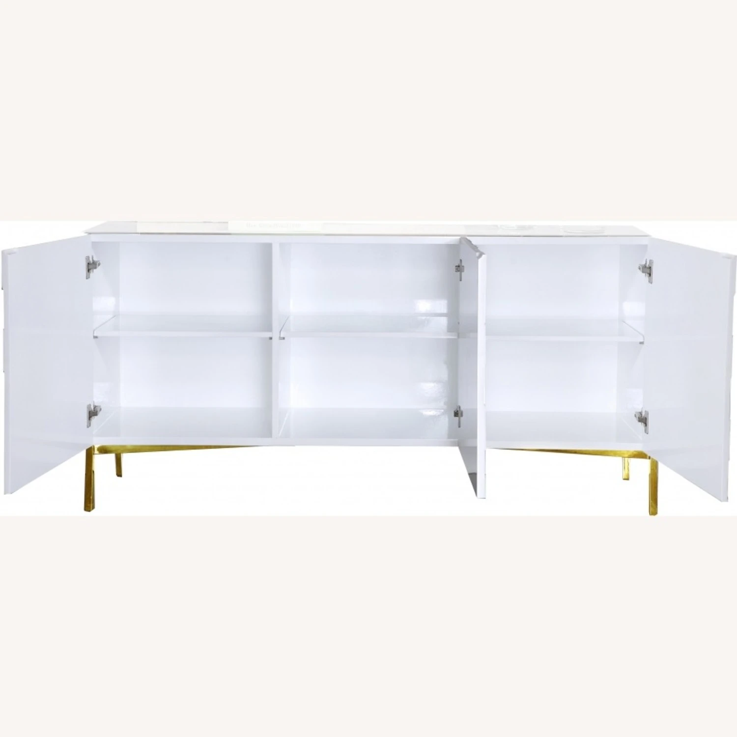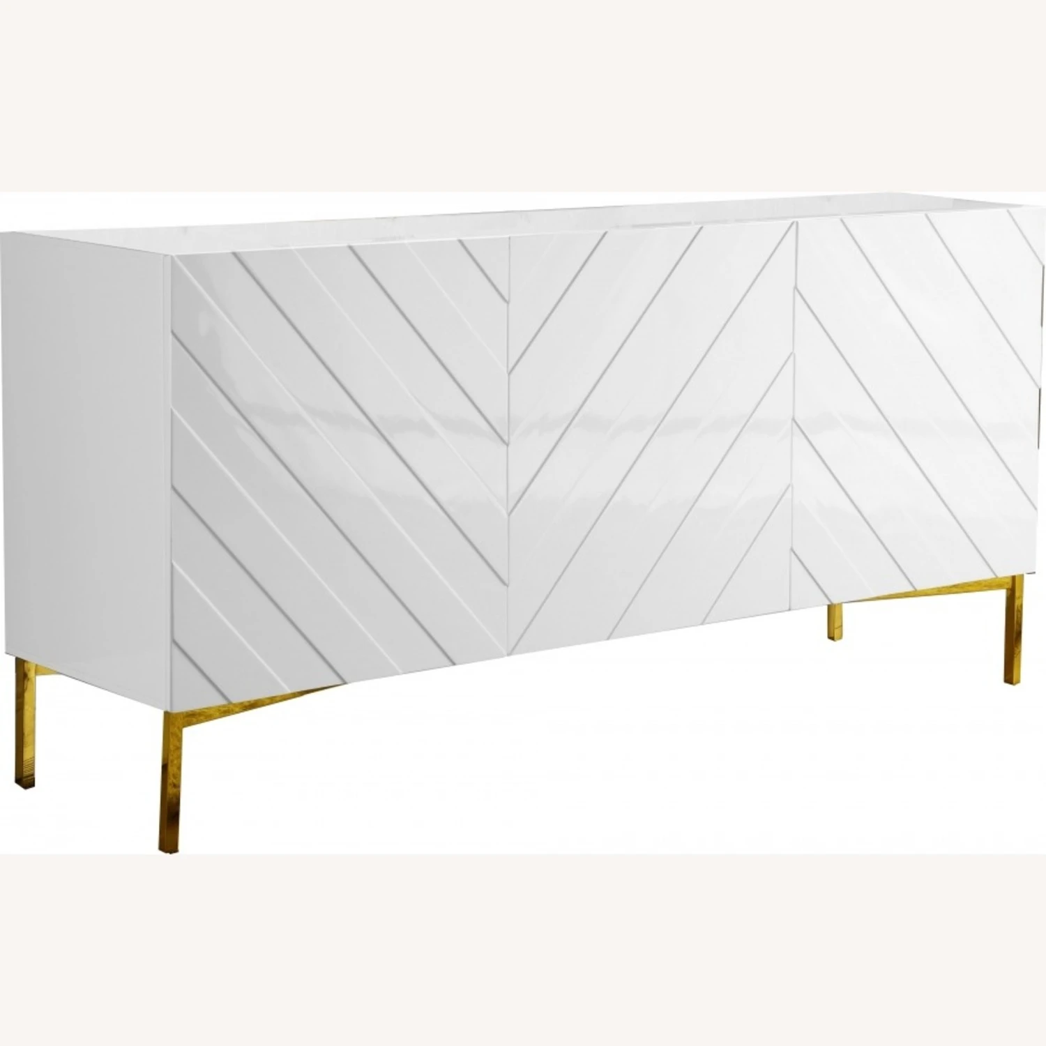 • This buffet has a rich gold stainless steel base that adds a gleaming, modish vibe and chevron white lacquered exterior for a contemporary finish.