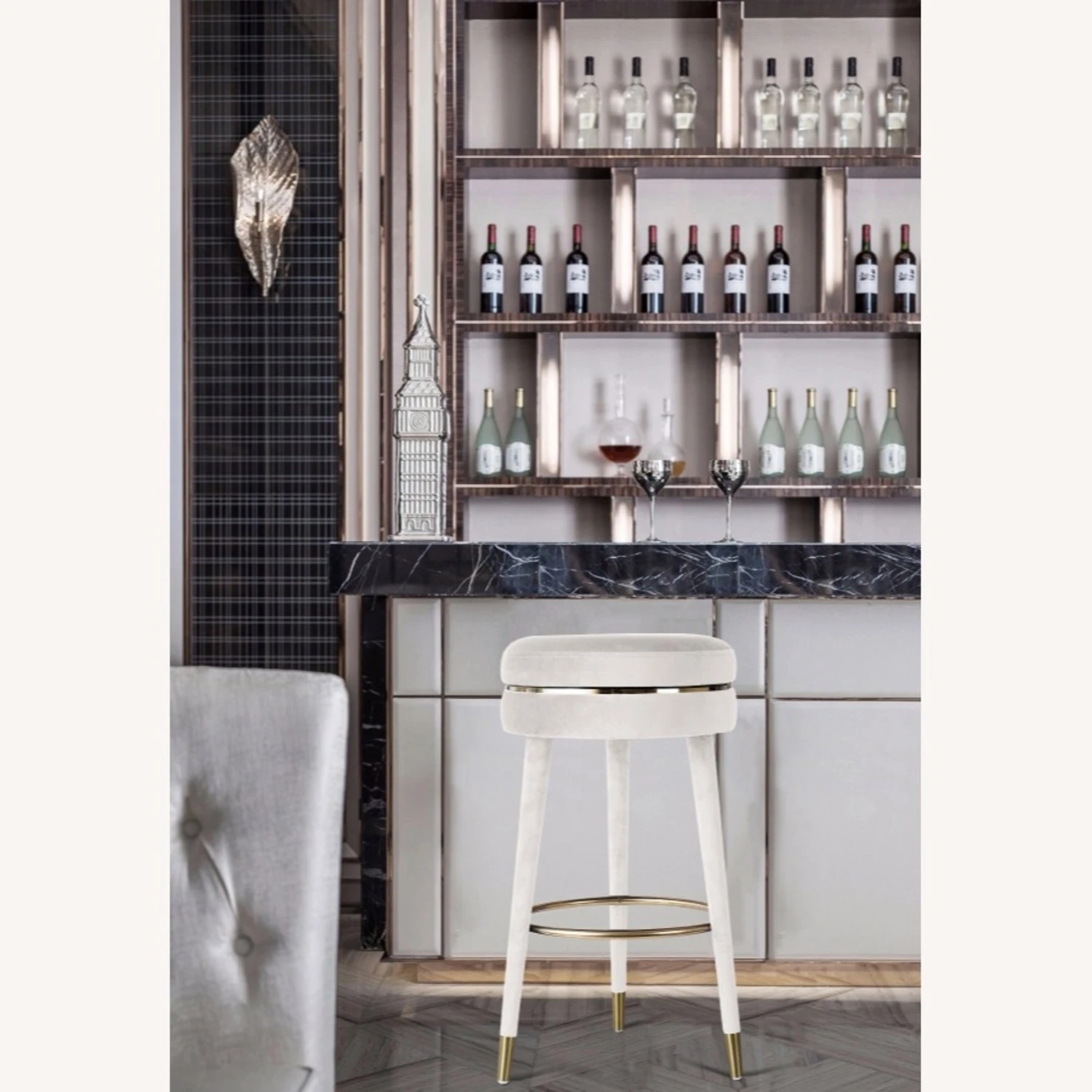 • The soft cream velvet upholstery is sleek and comfortable to the skin, and the wood frame adds durability and strength to the stool.