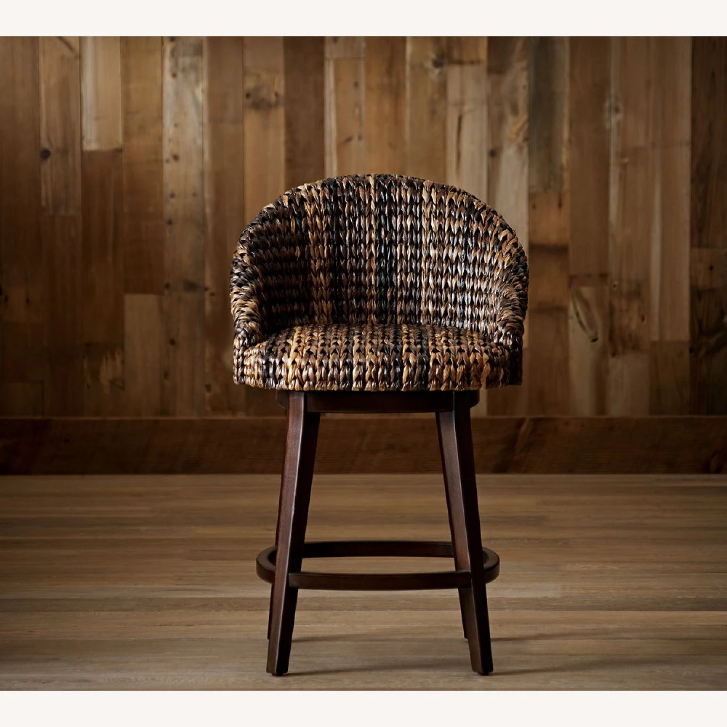 Havana Dark is handwoven of abaca with mahogany stained legs.