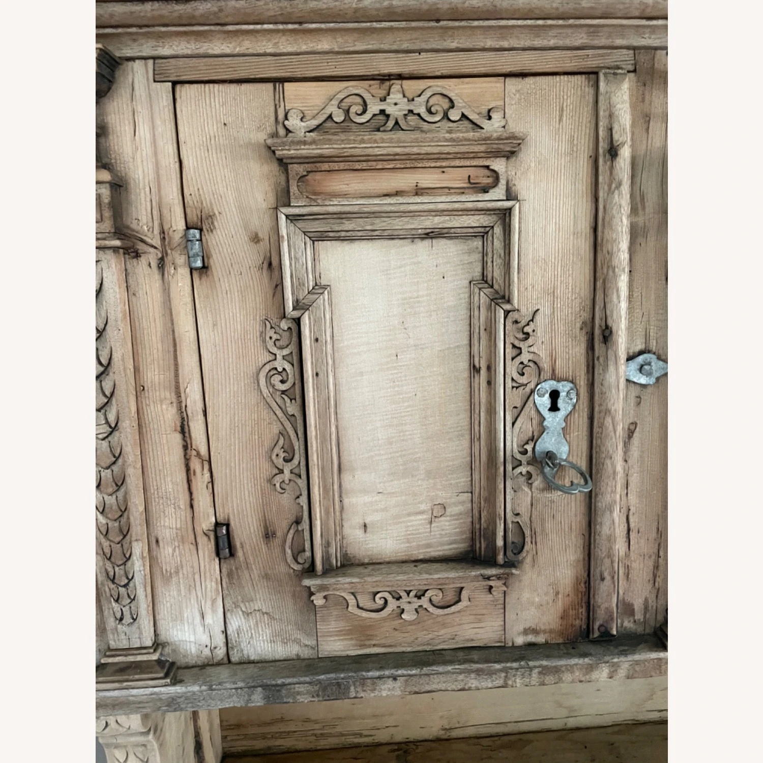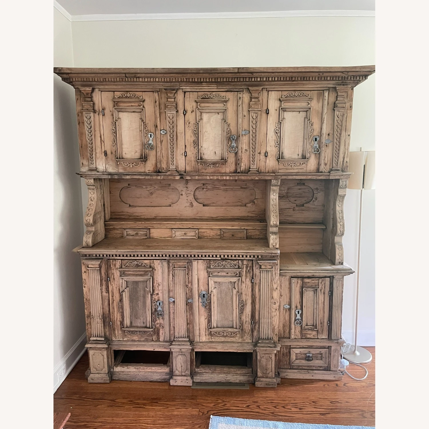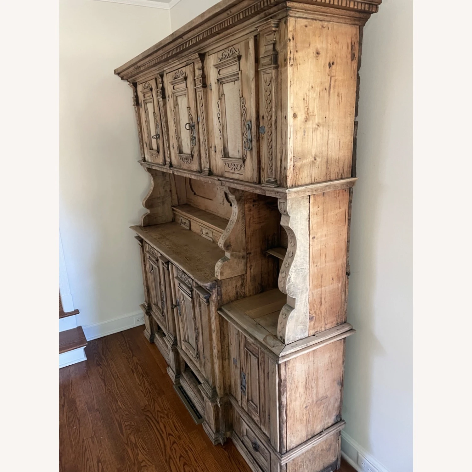 Seller’s Notes: This vintage Teak French Country buffet and cabinet set was purchased in L’Isle-sur-la-Sorgue, a Provençal town in the department of Vaucluse, southeast France famous for its antique markets. Shipped over to the US in 2017, this large piece was used as an accent in the living room of a weekend home. The wood is virtually untarnished showing a pure teak grain. This is a very large piece with many drawers and fixtures that are beginning to loosen and wobble with age. Could be beautifully restored.