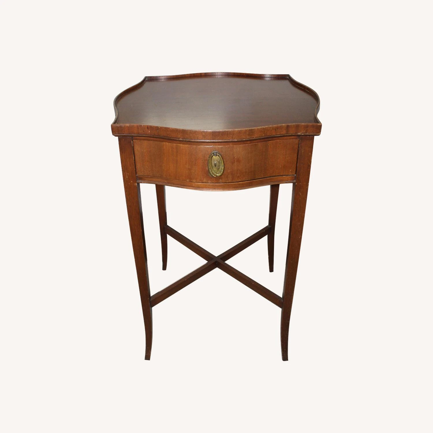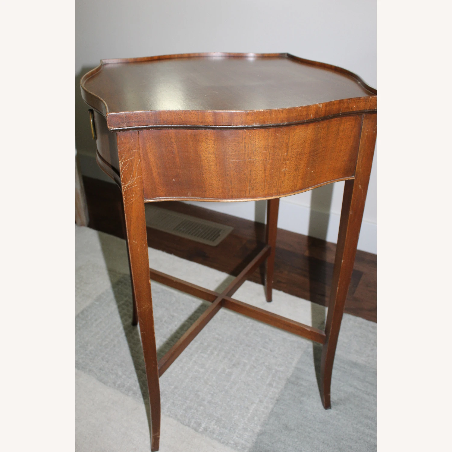 Seller’s Notes: Elegant Mahogany Side table made in USA by the Imperial Furniture. Original label in drawer.