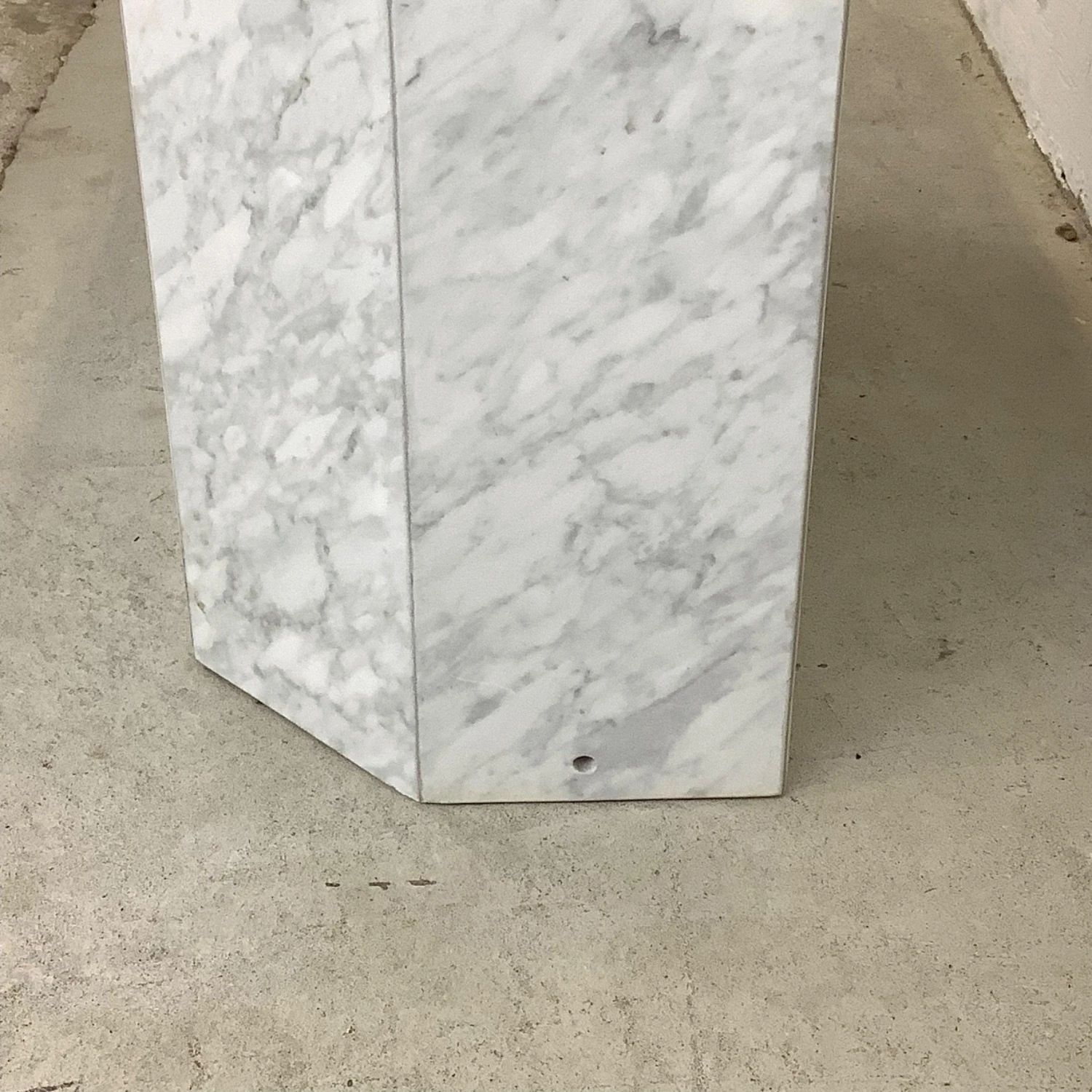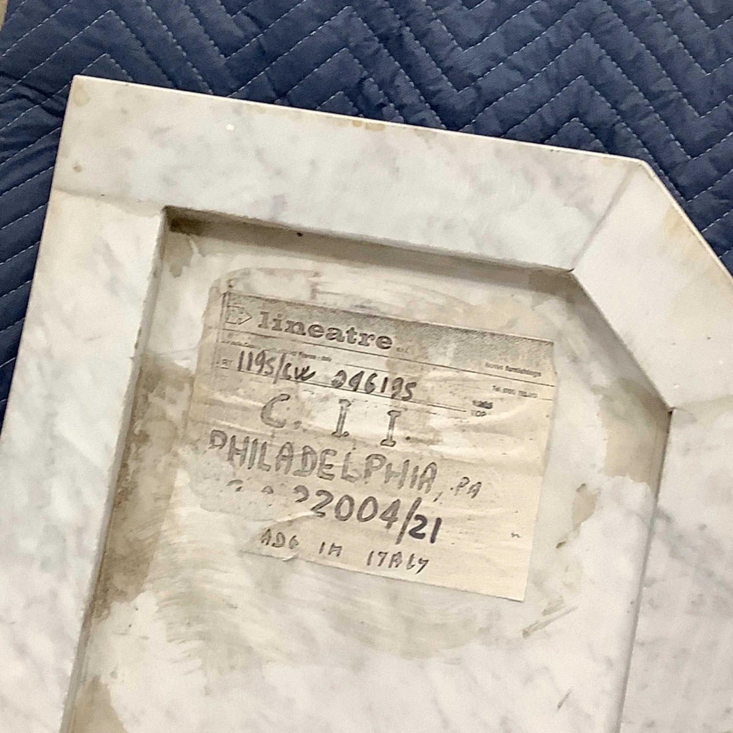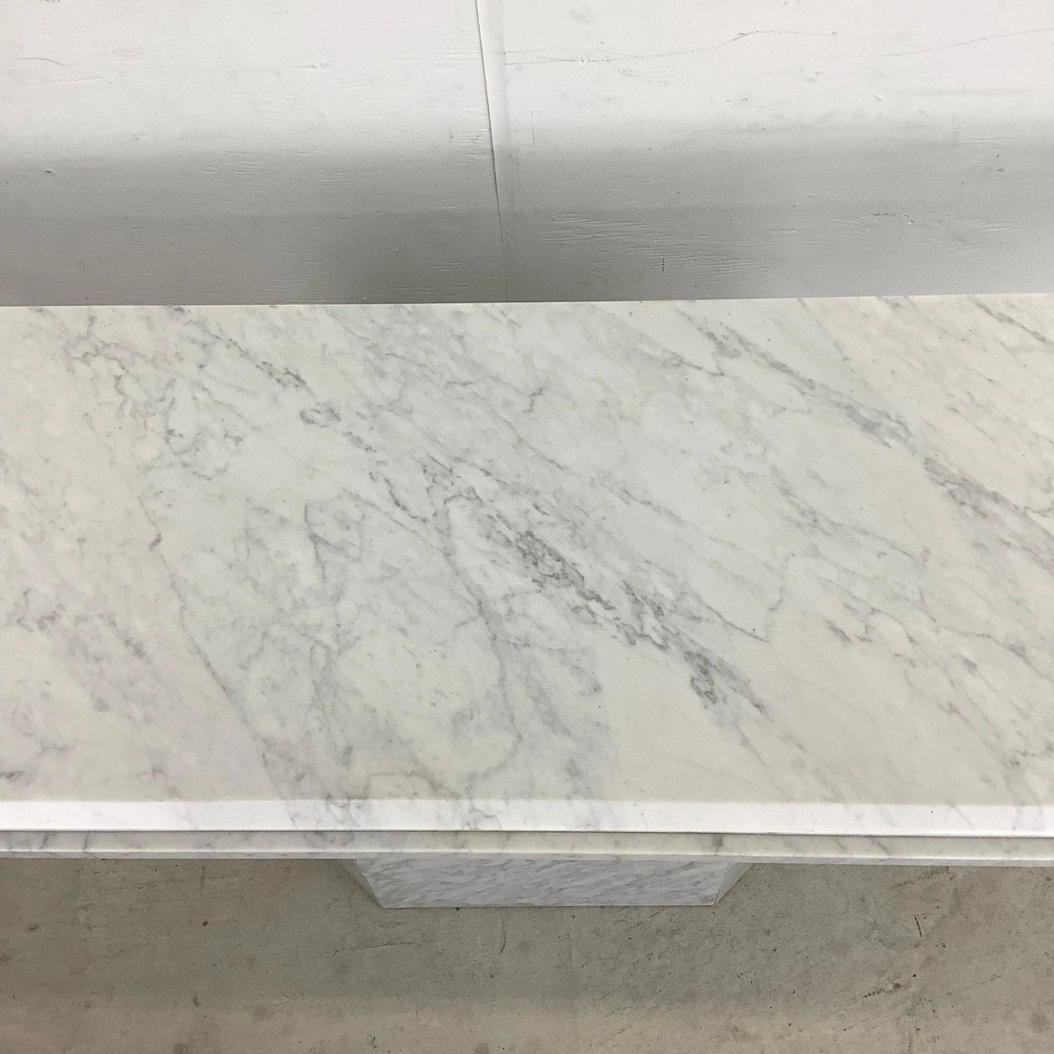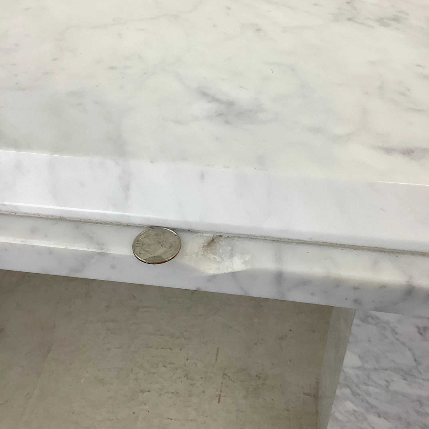 Seller’s Notes: This stunning marble console table features HEAVY Italian modern construction with beautiful finish and shapely beveled edge. The impressive size of this thick stone console table makes it a substantial addition to entryway, hall, or otherwise.