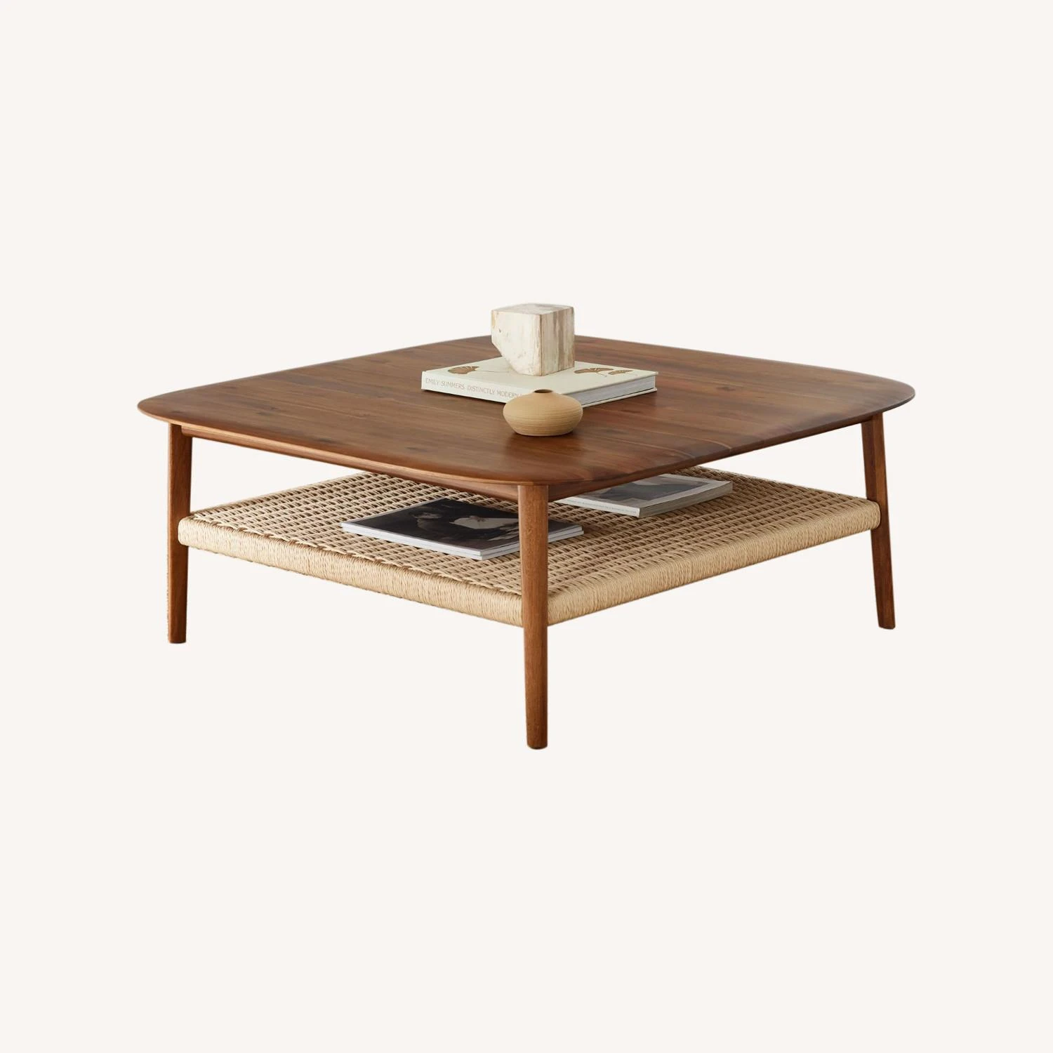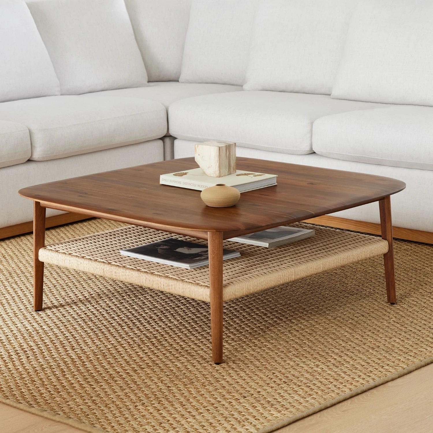 Seller’s Notes: Solid acacia wood top and frame in a water-based Cool Walnut finish.