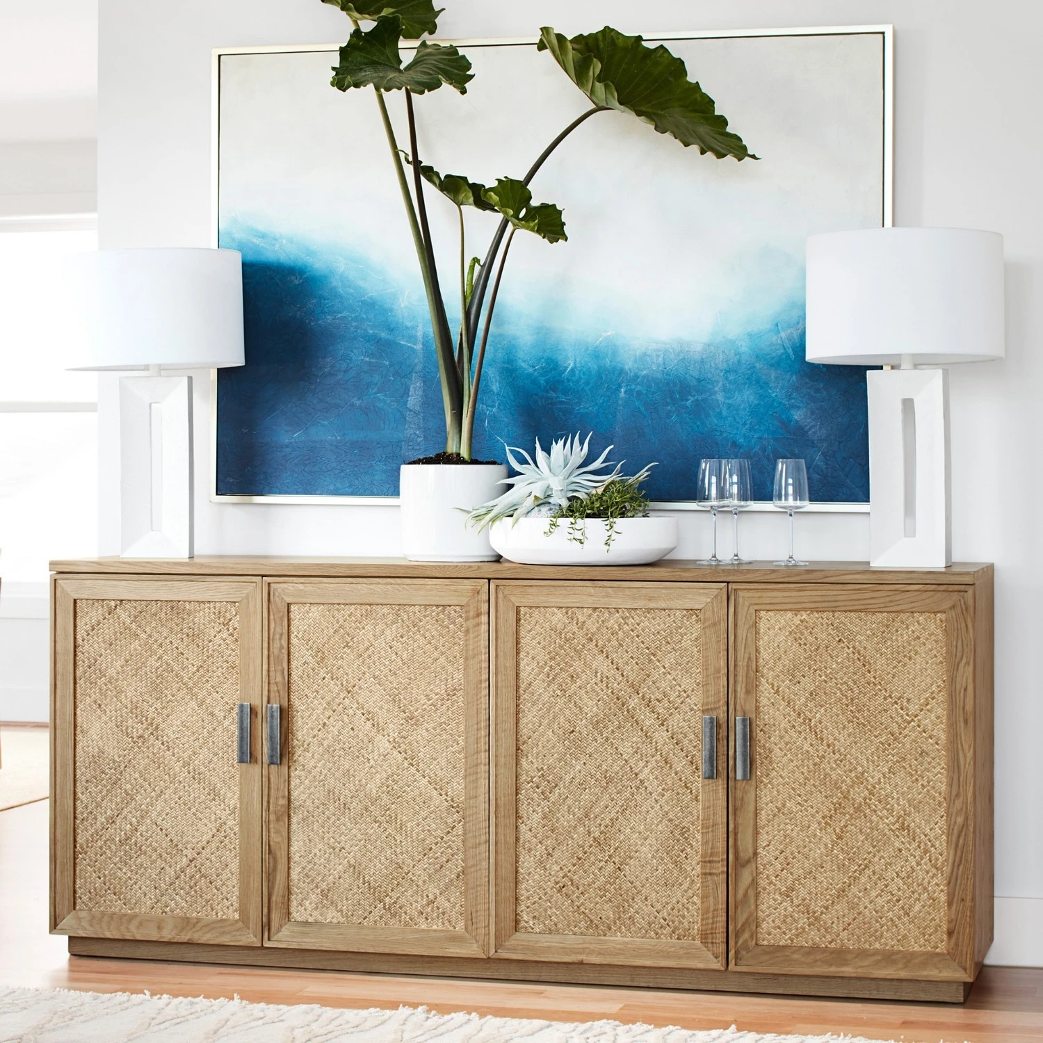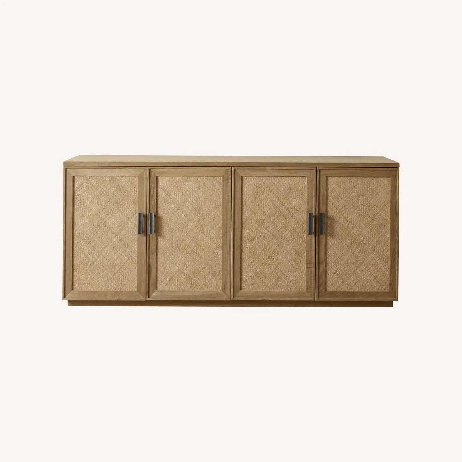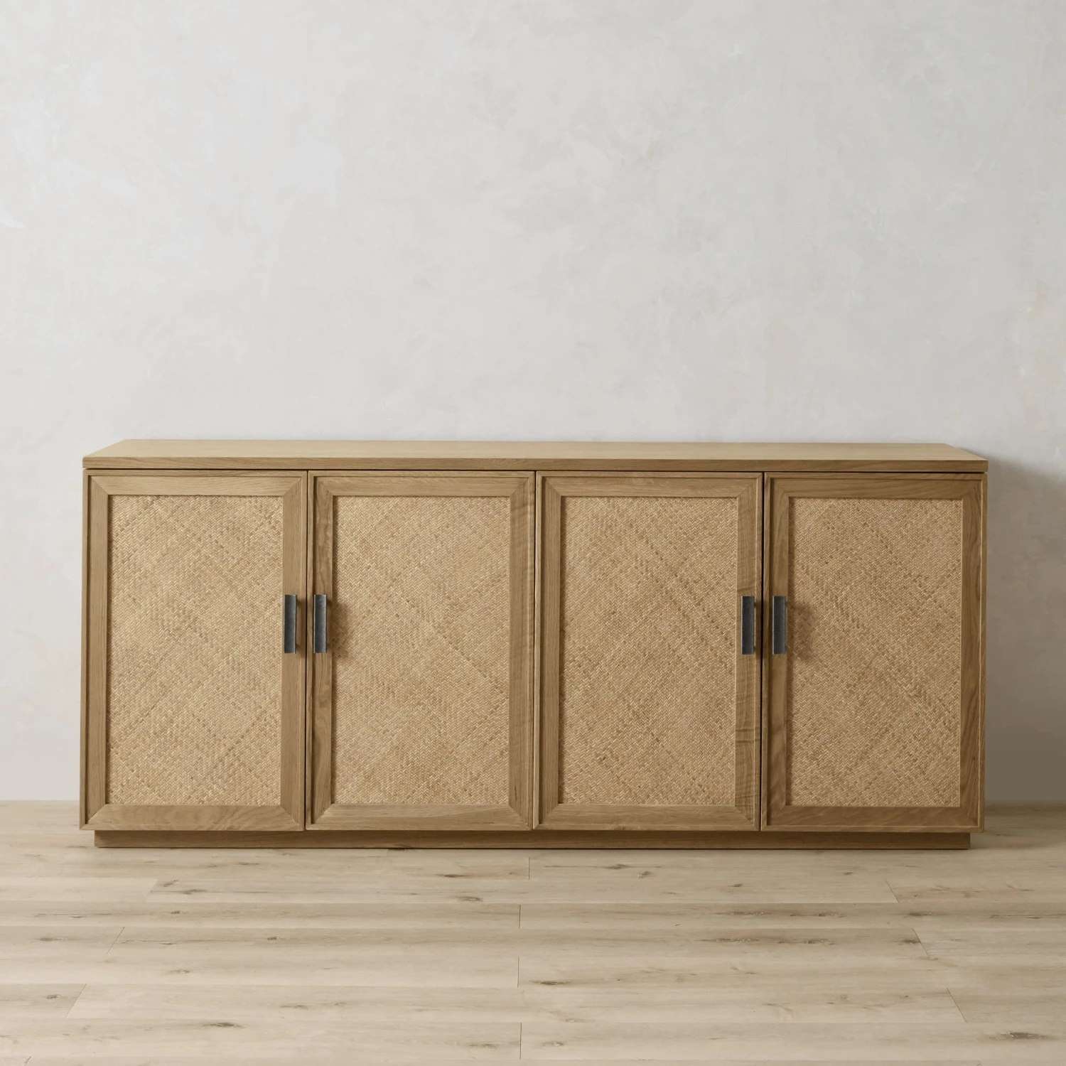 Double doors feature the look of woven natural-cane fronts.