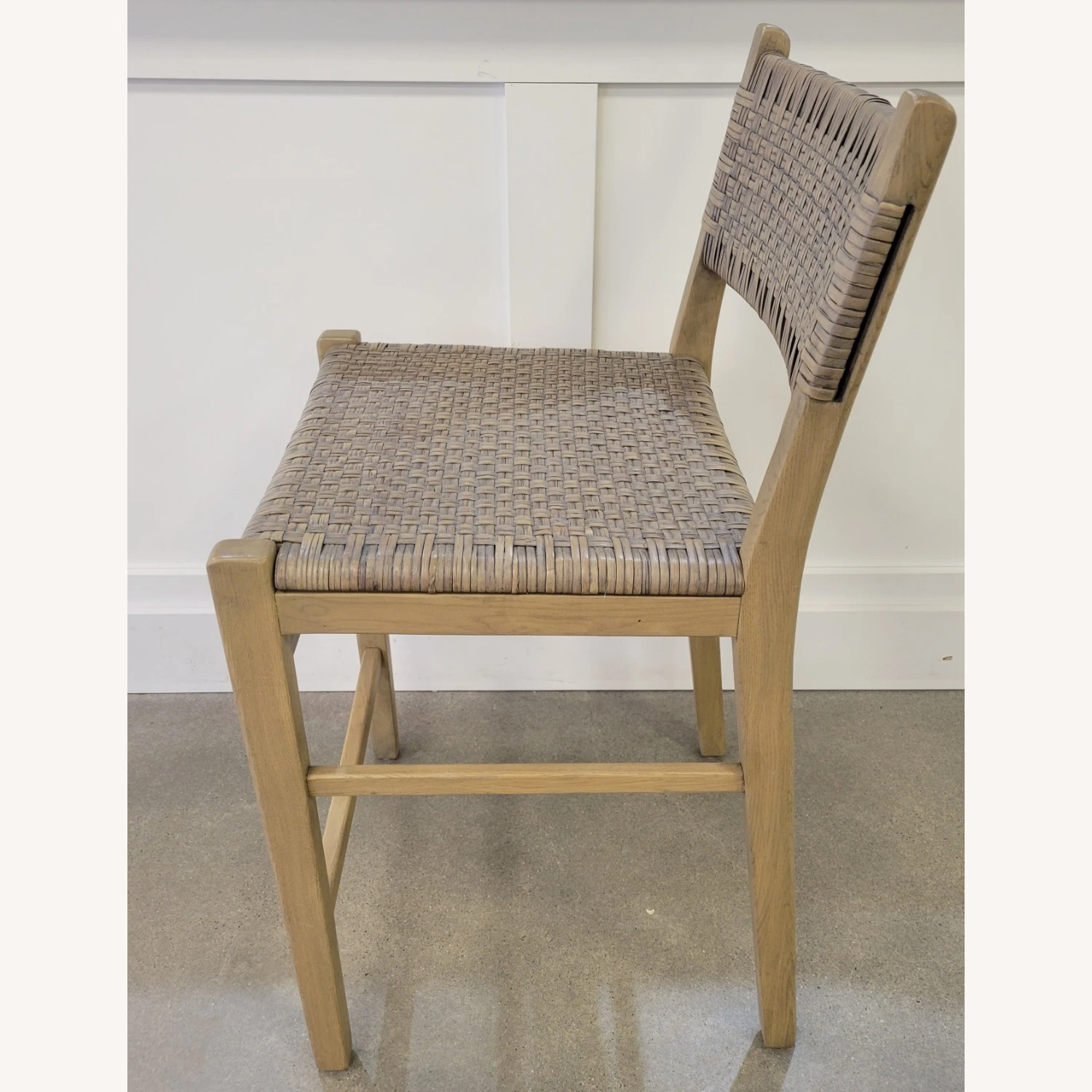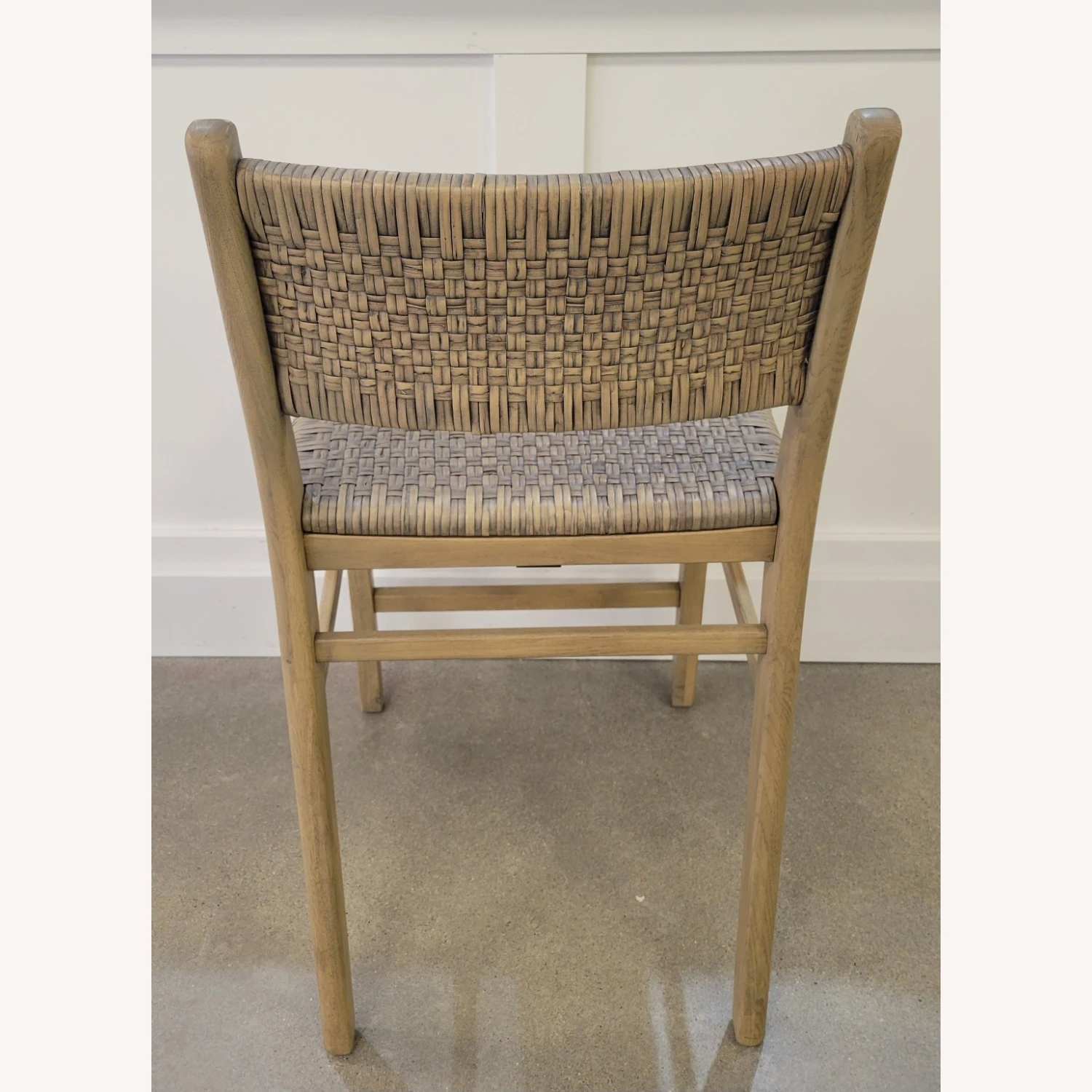 Woven rattan seat back is framed in kiln-dried, sustainably harvested engineered wood.